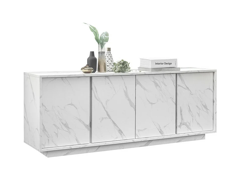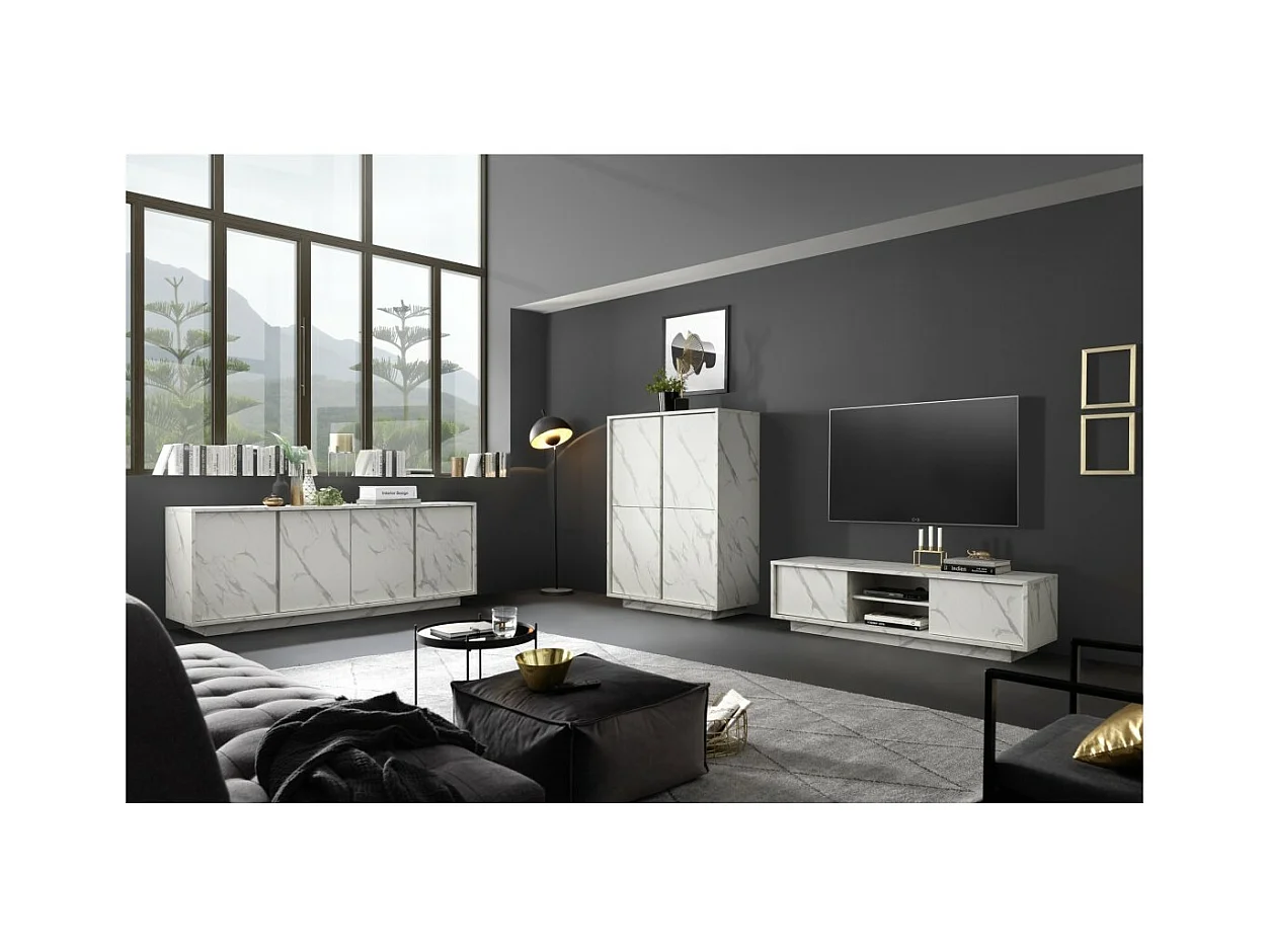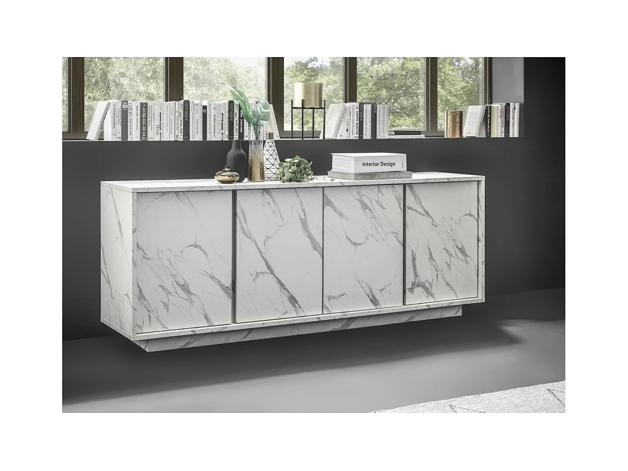 Buffet 4 portes, collection COLOMARMO, coloris blanc effet marbre, idéal pour un salon ou une salle à manger design