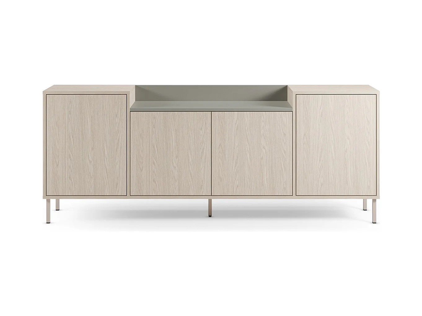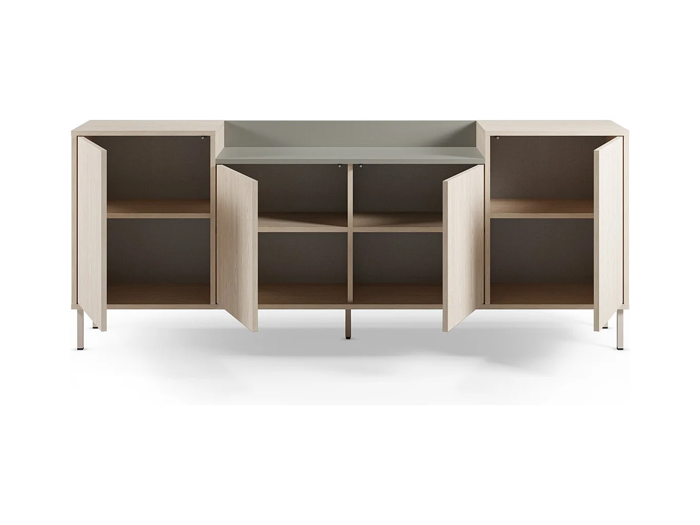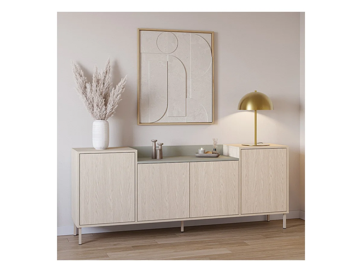 Buffet 4 portes décor chêne clair et vert 200 cm - Amos