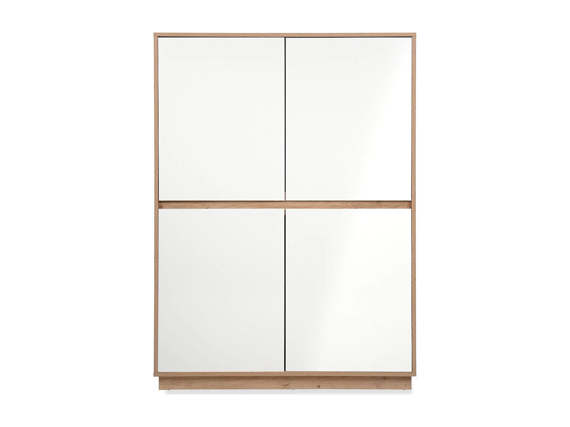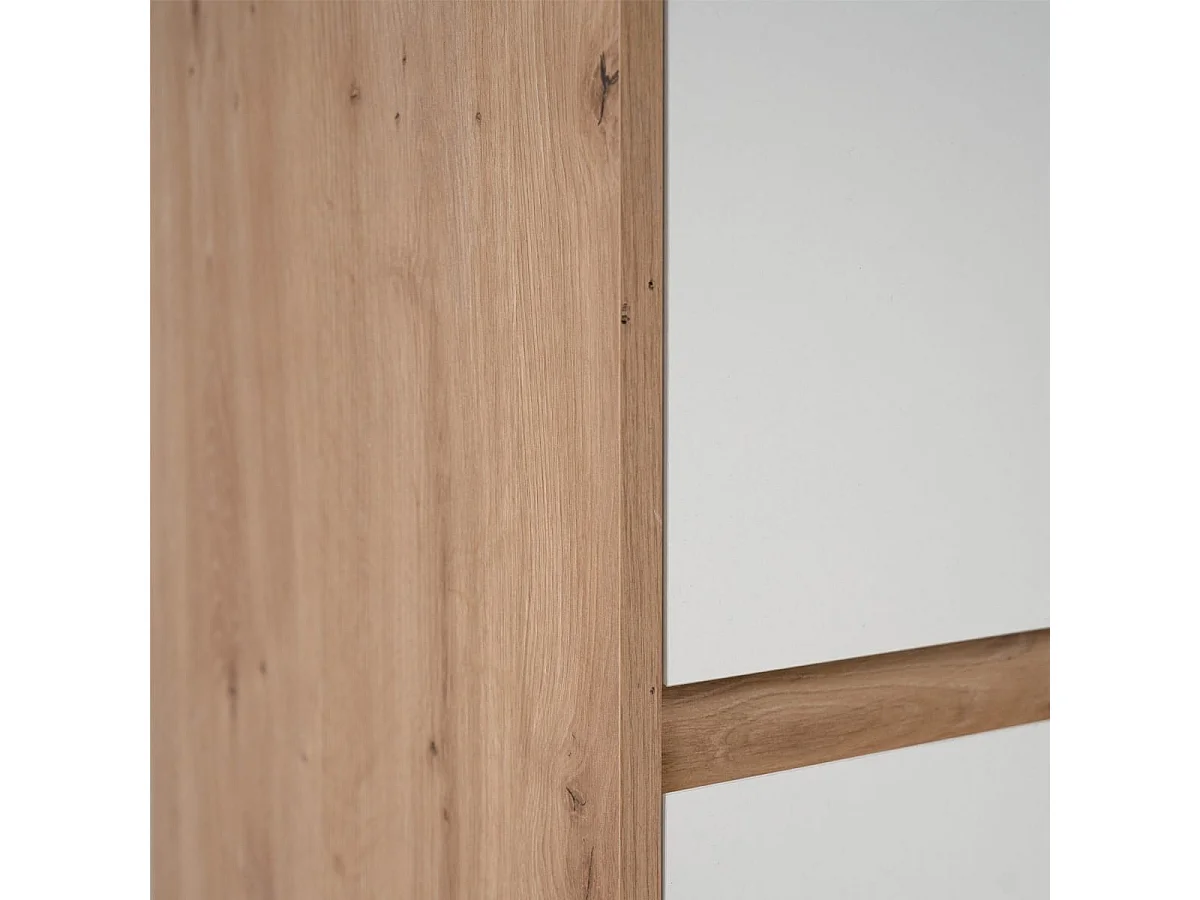Buffet 4 porte effet Chêne et blanc brillant 101 cm - Nalen