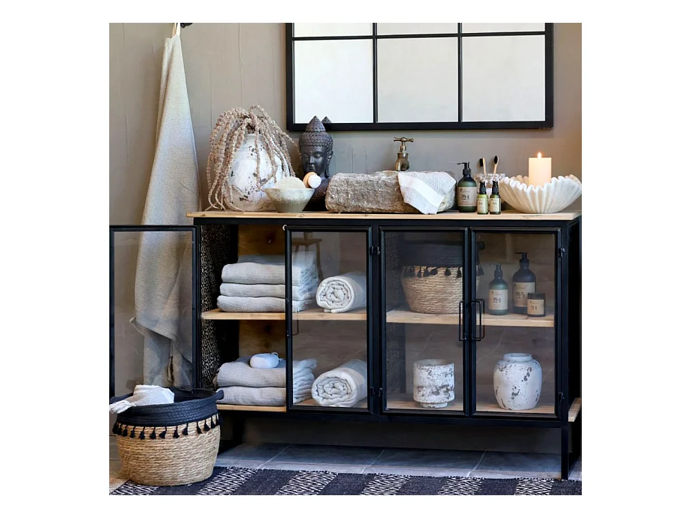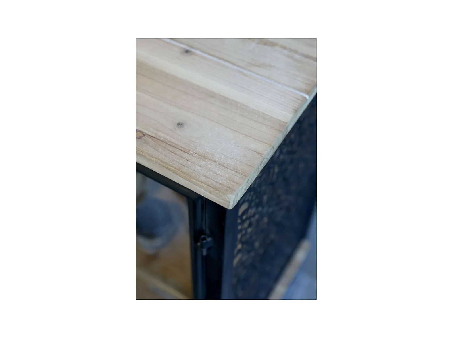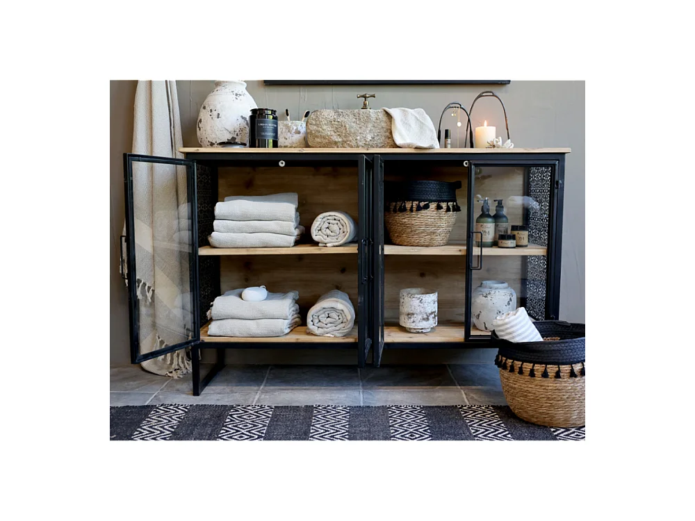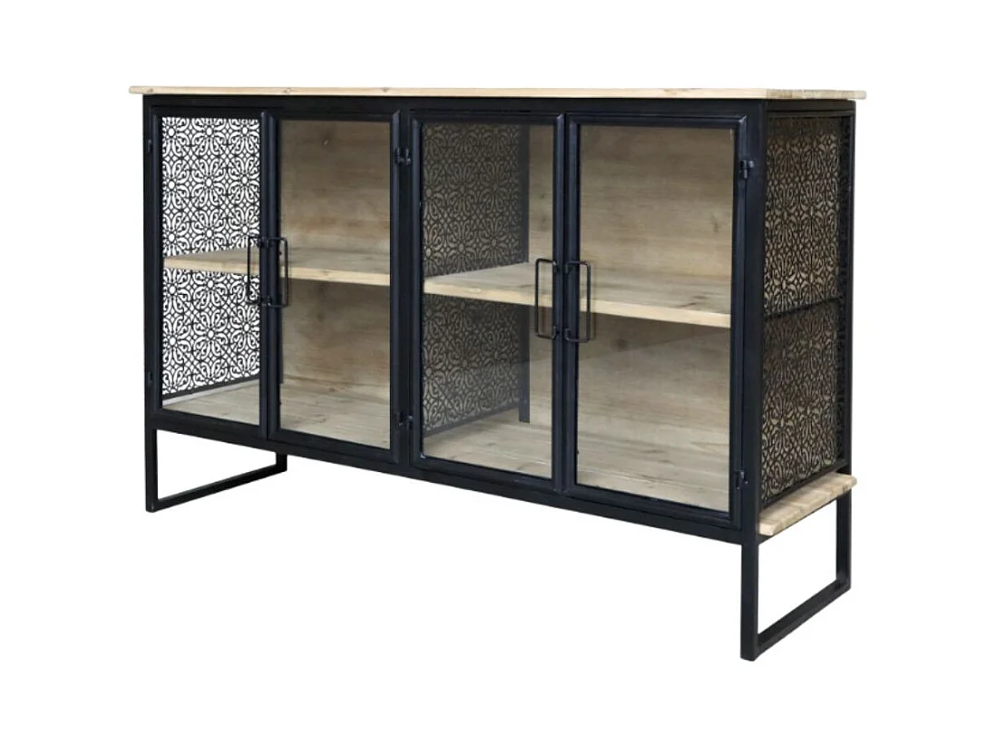 Buffet 4 portes en bois de sapin marron et fer noir 121 x 38 x 80 cm