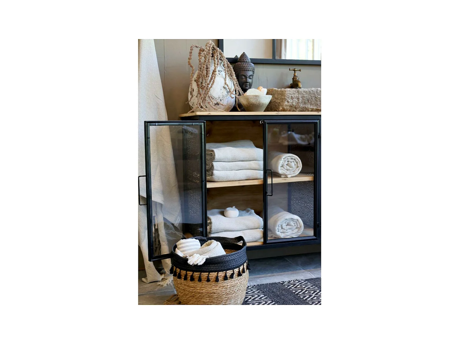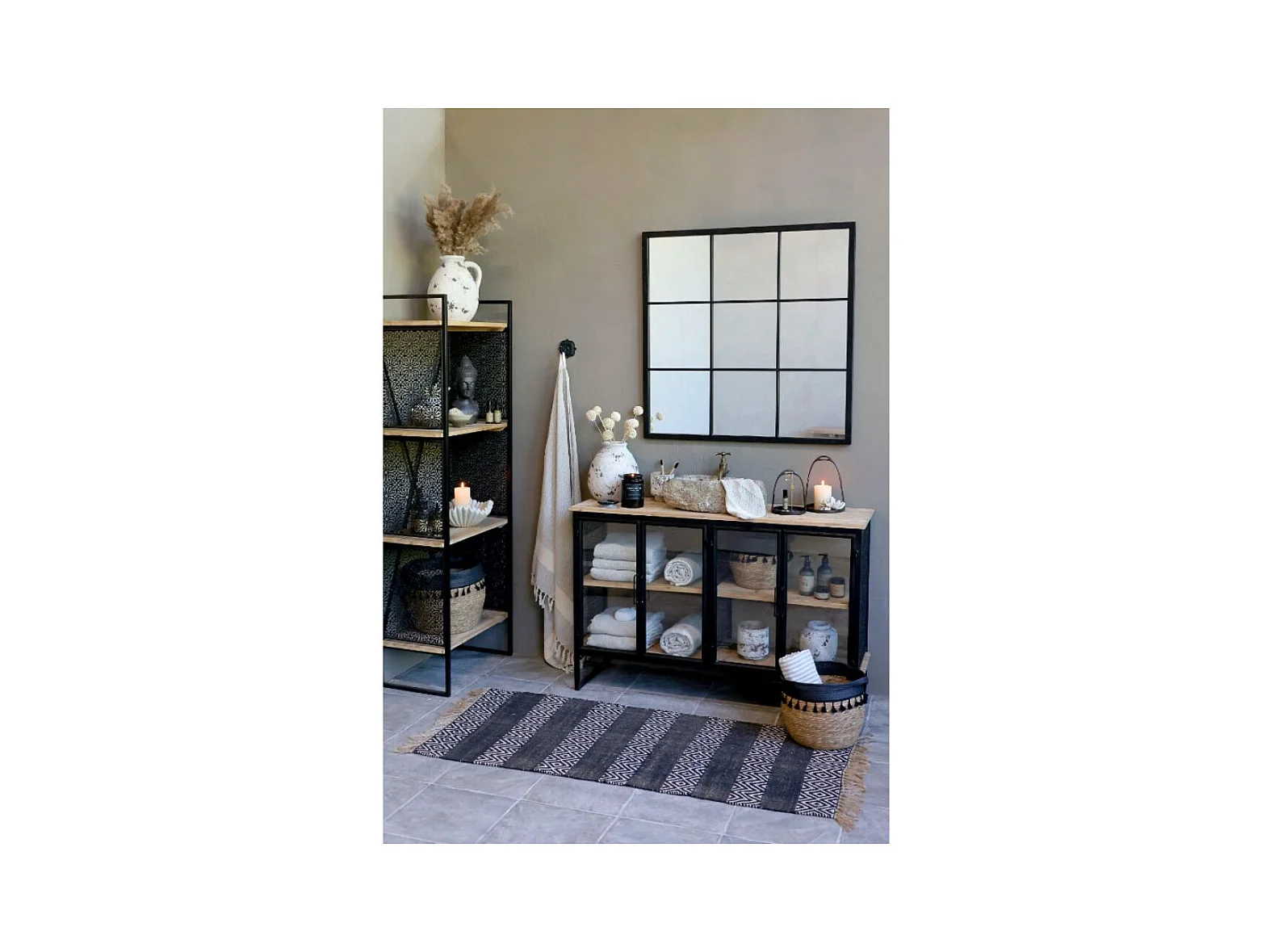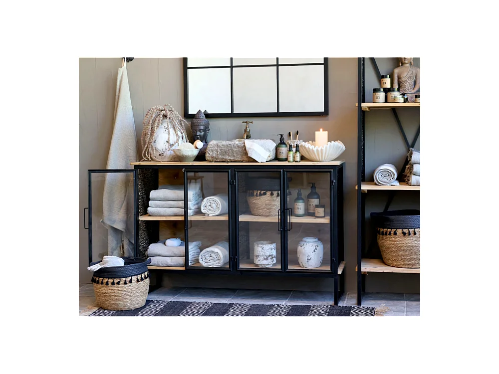 Buffet 4 portes en bois de sapin marron et fer noir 121 x 38 x 80 cm