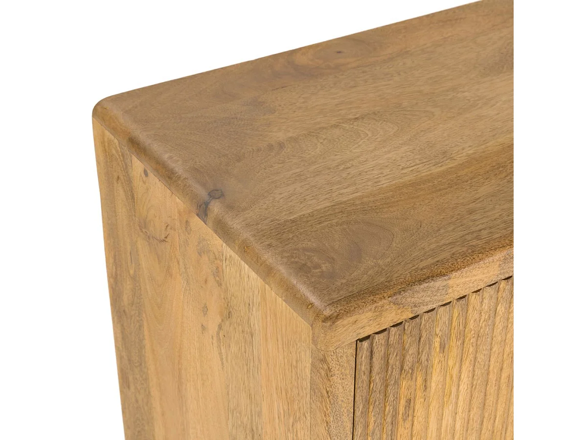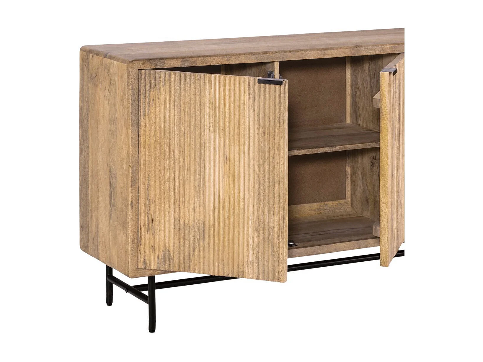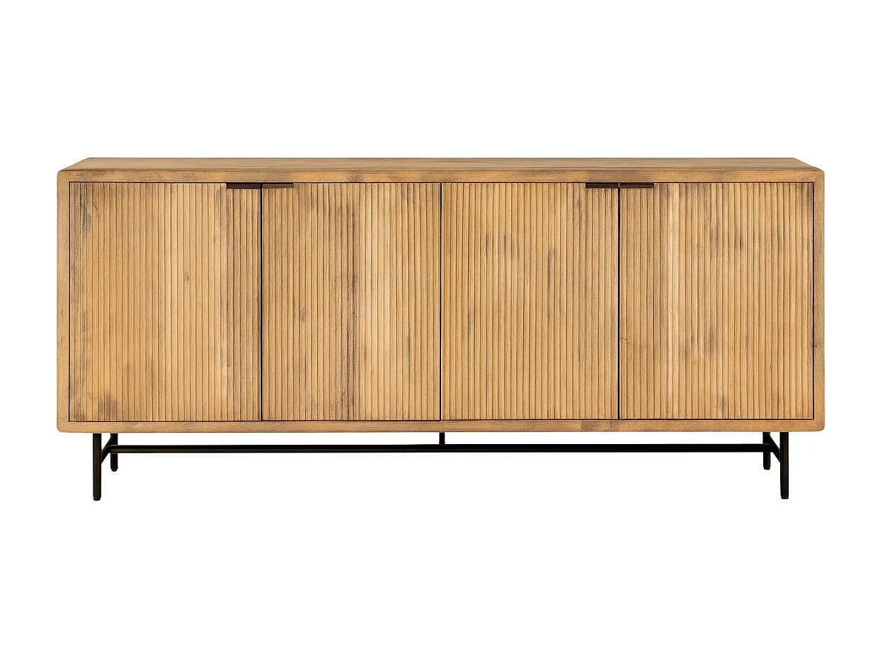 Buffet 4 portes en manguier massif relief graphique vertical piètement métal laqué noir - MELKA