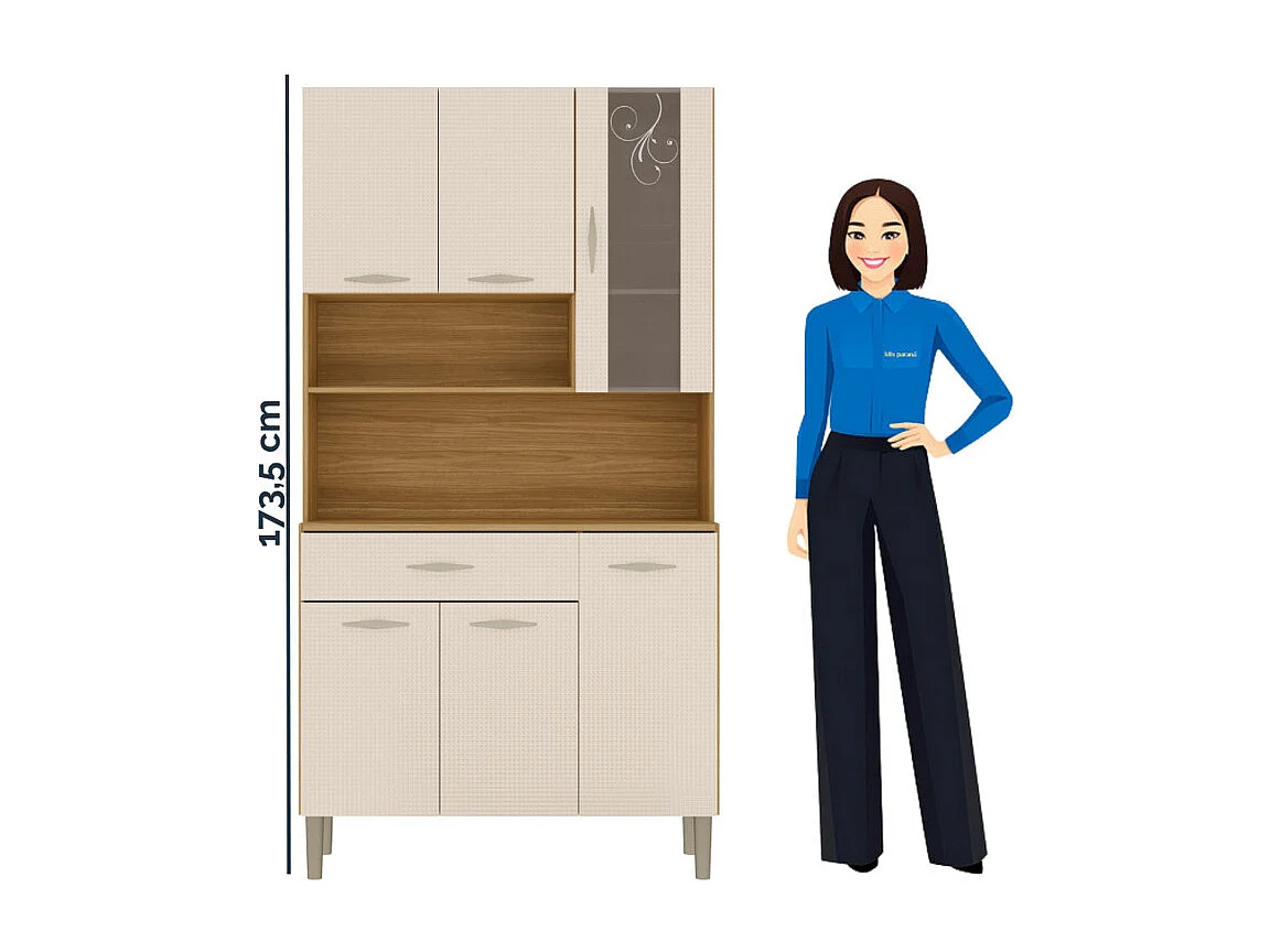Buffet 6 Portes 1 Tiroir 7 Niches Chêne et Blanc Ecru Gaufré L 90 H 173.5 P 36.3 cm
