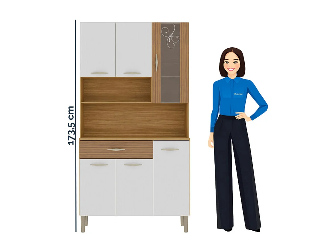 Buffet 6 Portes 1 Tiroir 7 Niches Chêne et Blanc Ecru L 90 H 173.5 P 36.3 cm
