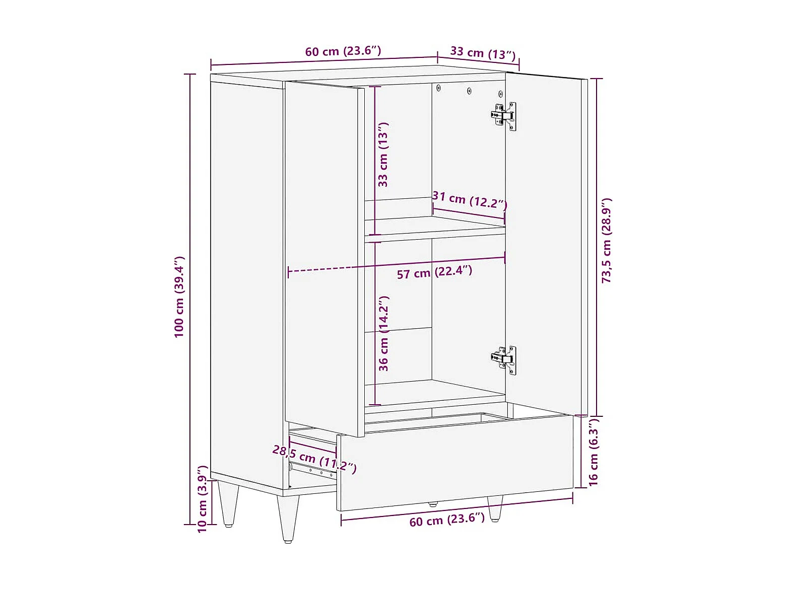 Buffet 60x33x100 cm bois de manguier massif