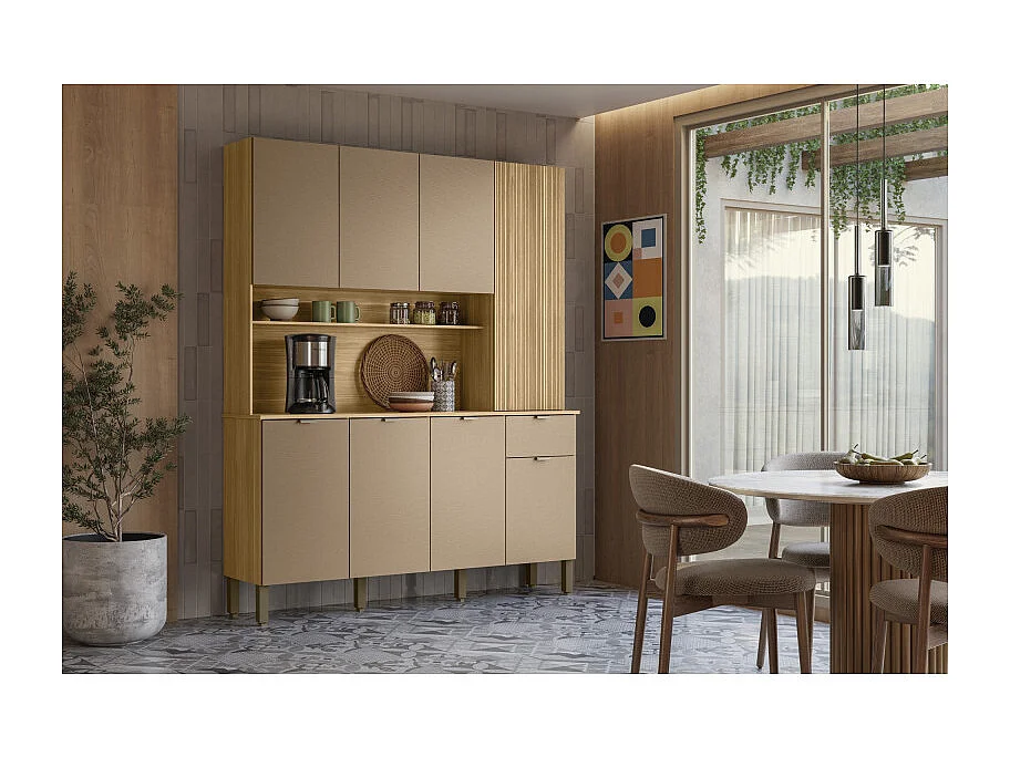 Buffet 8 Portes 1 Tiroir 18 Niches Chêne et Gris Taupe L 161 H 200 P 38.8 cm