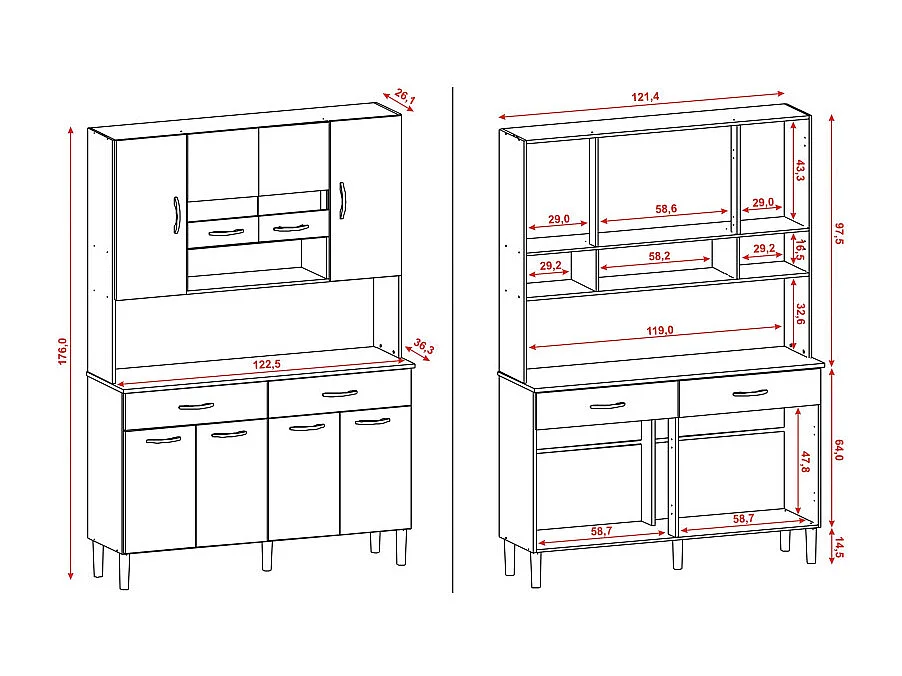 Buffet 8 Portes 2 Tiroirs 9 Niches Blanc et Noir Vogue L 122.5 H 176 P 36.3 cm