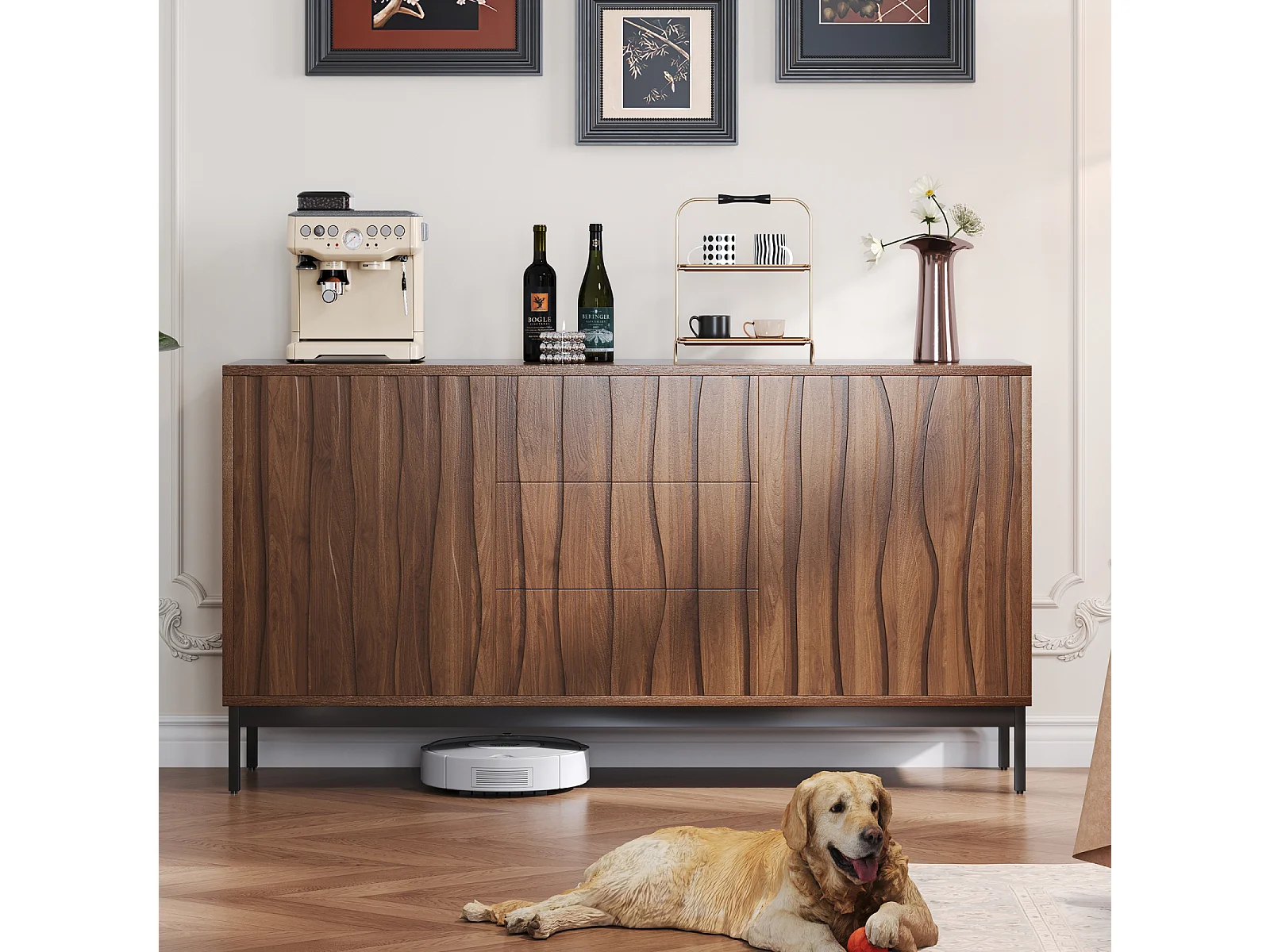 Buffet à 3 tiroirs - Armoire de cuisine, de salon - En bois de chêne foncé veiné - 150 x 40 x 80 cm