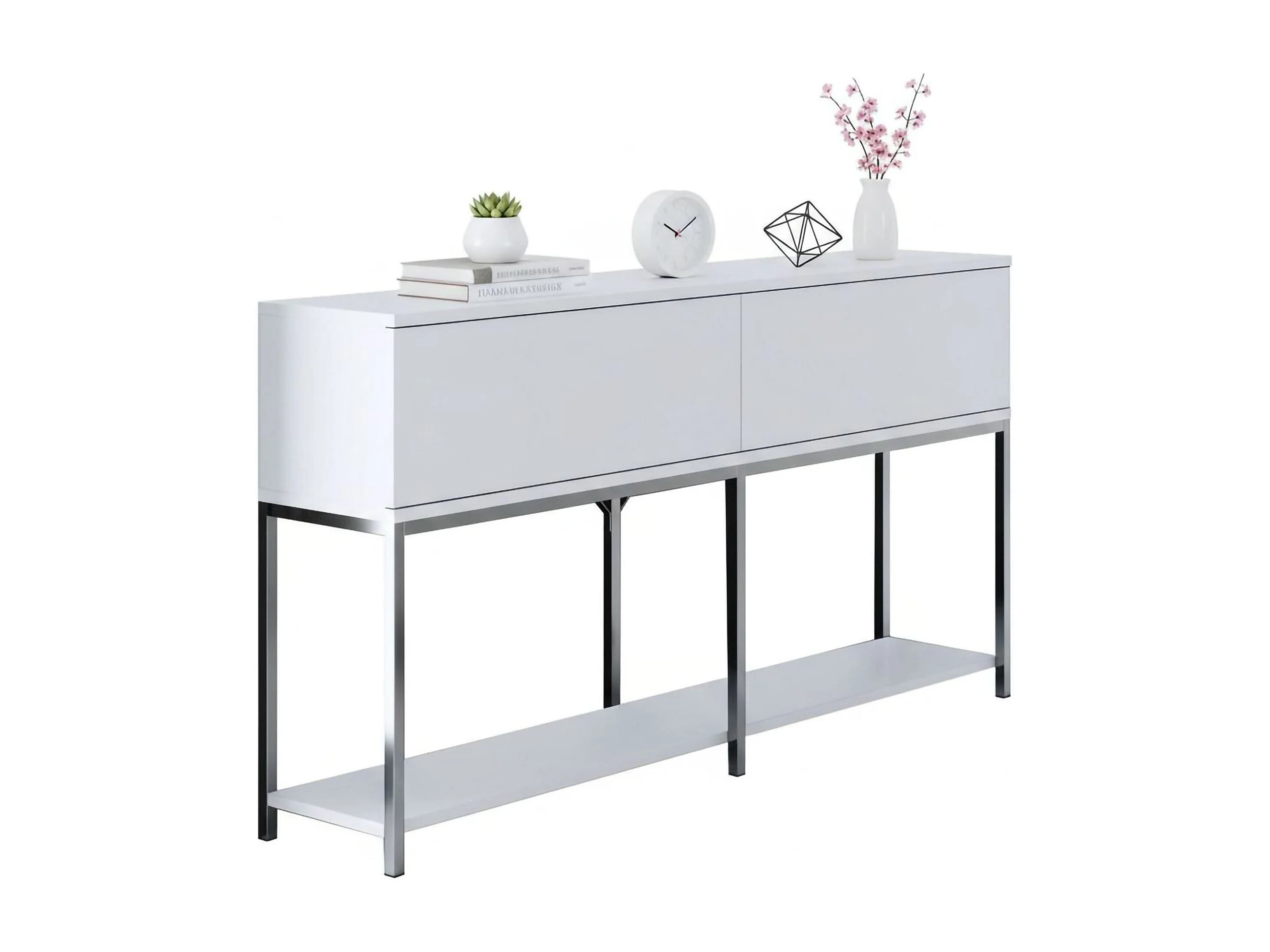 Buffet Altair, Buffet du salon, Commode de salon, Garde-manger de cuisine, 150x30h80 cm, Blanc et Argent