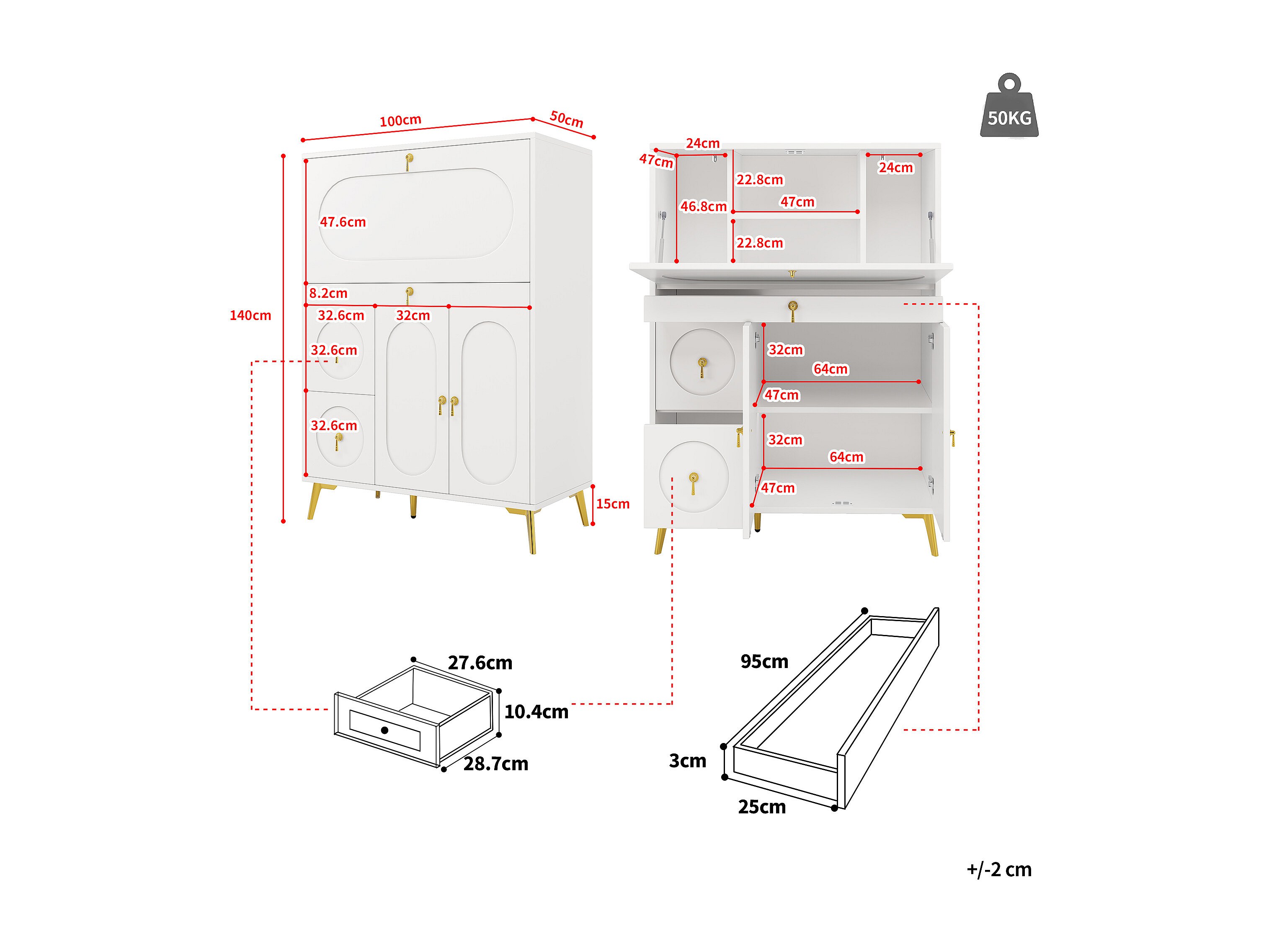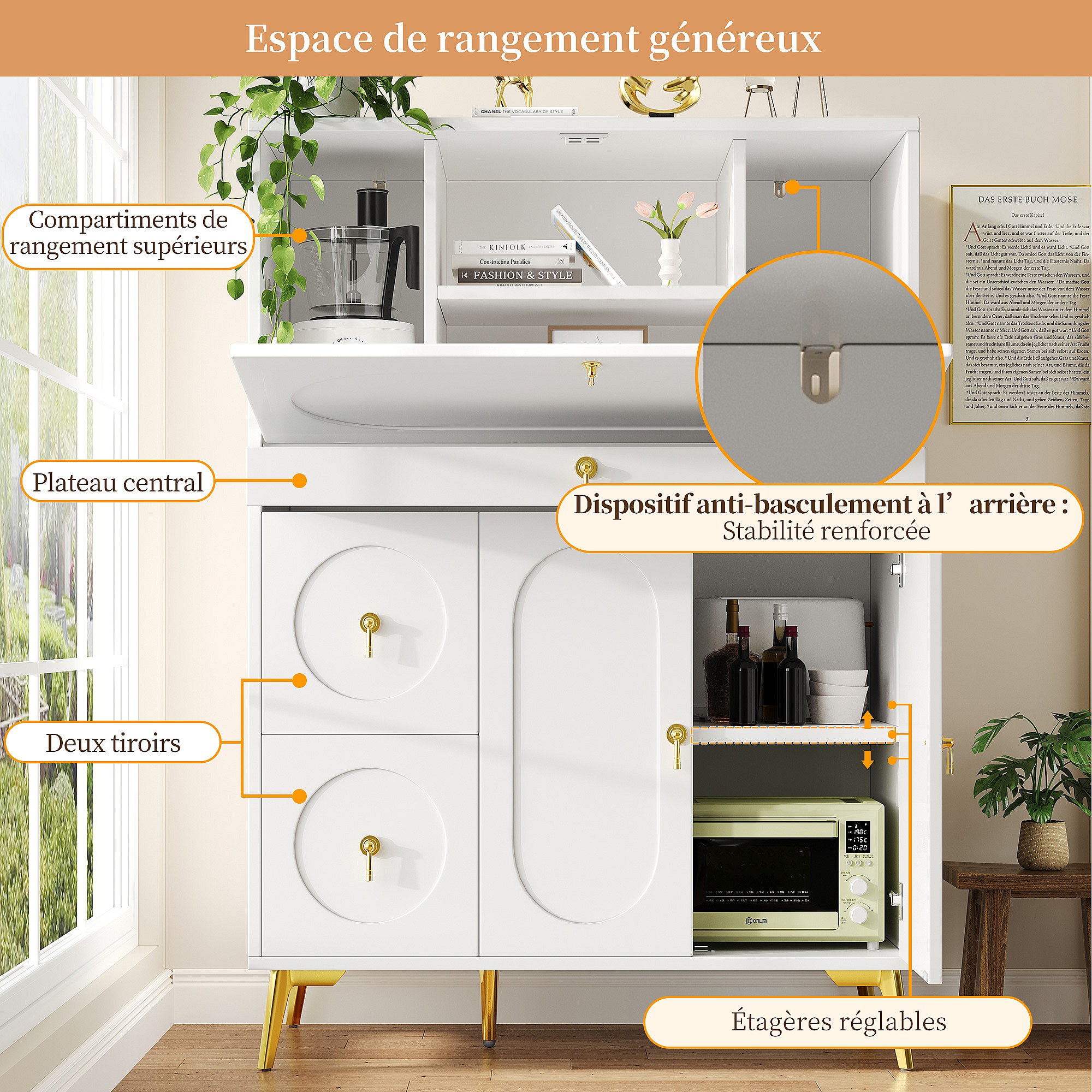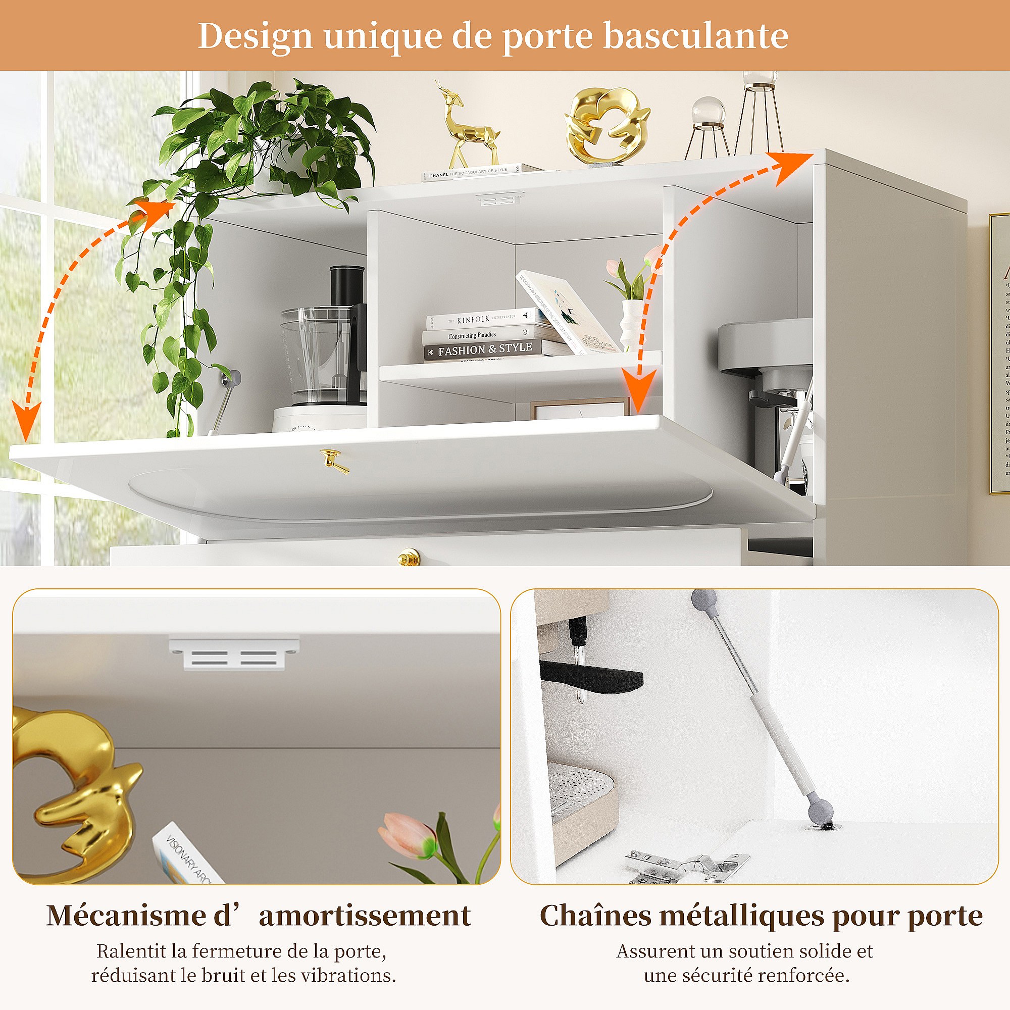 Buffet / armoire de cuisine 100×50×140 cm avec portes pliantes, Meuble moderne et multifonction pour cuisine, salle à manger et salon, Blanc