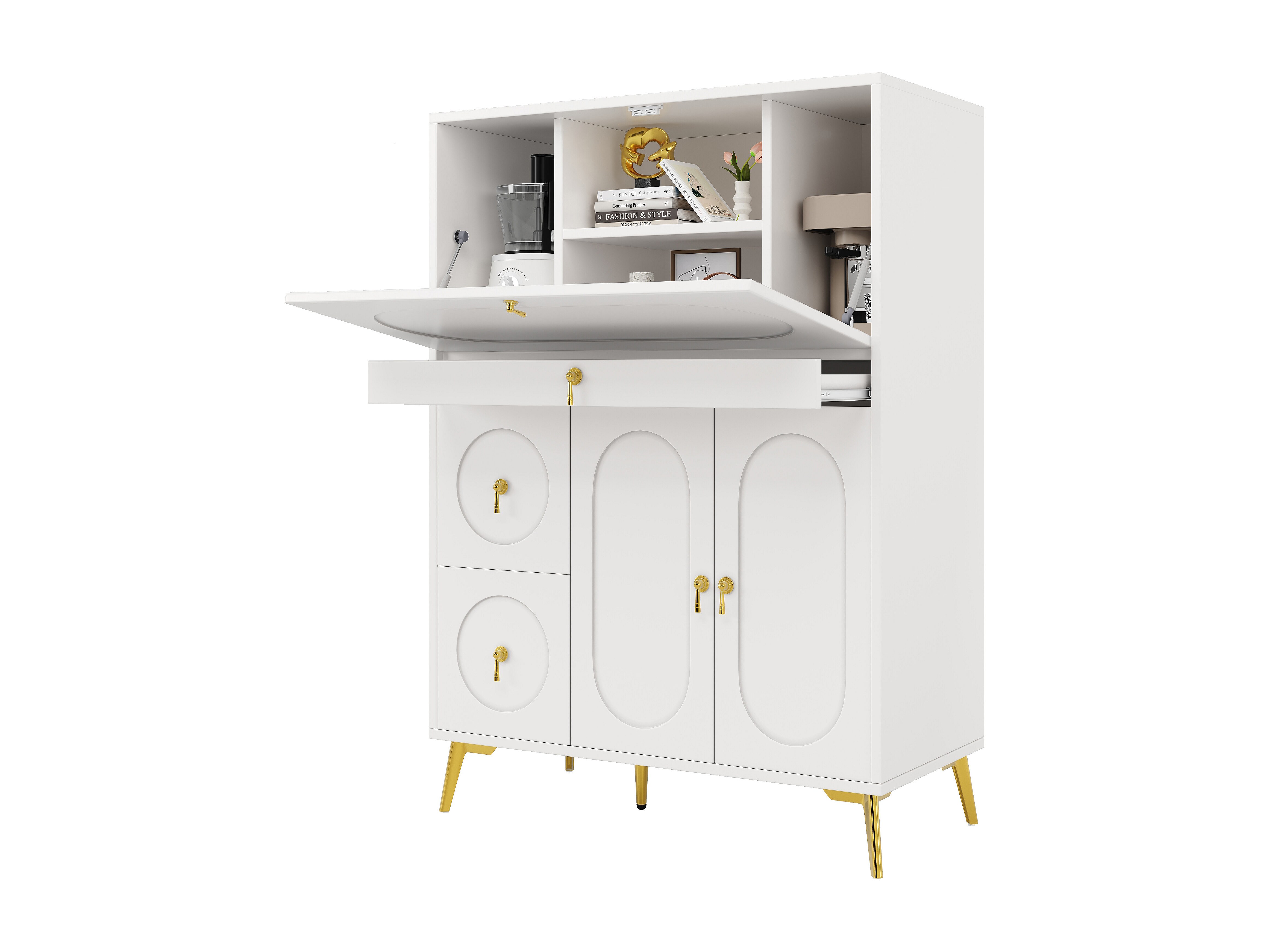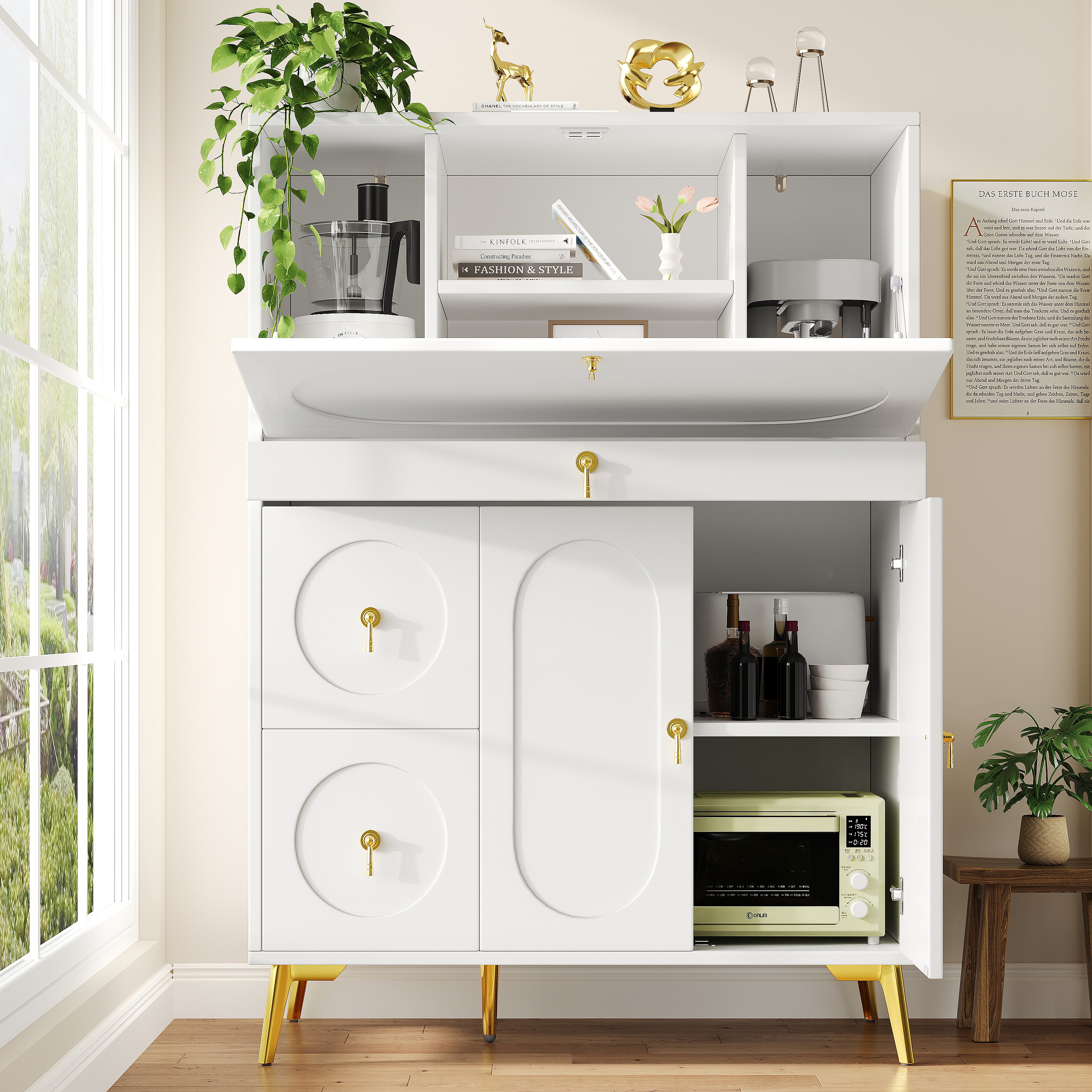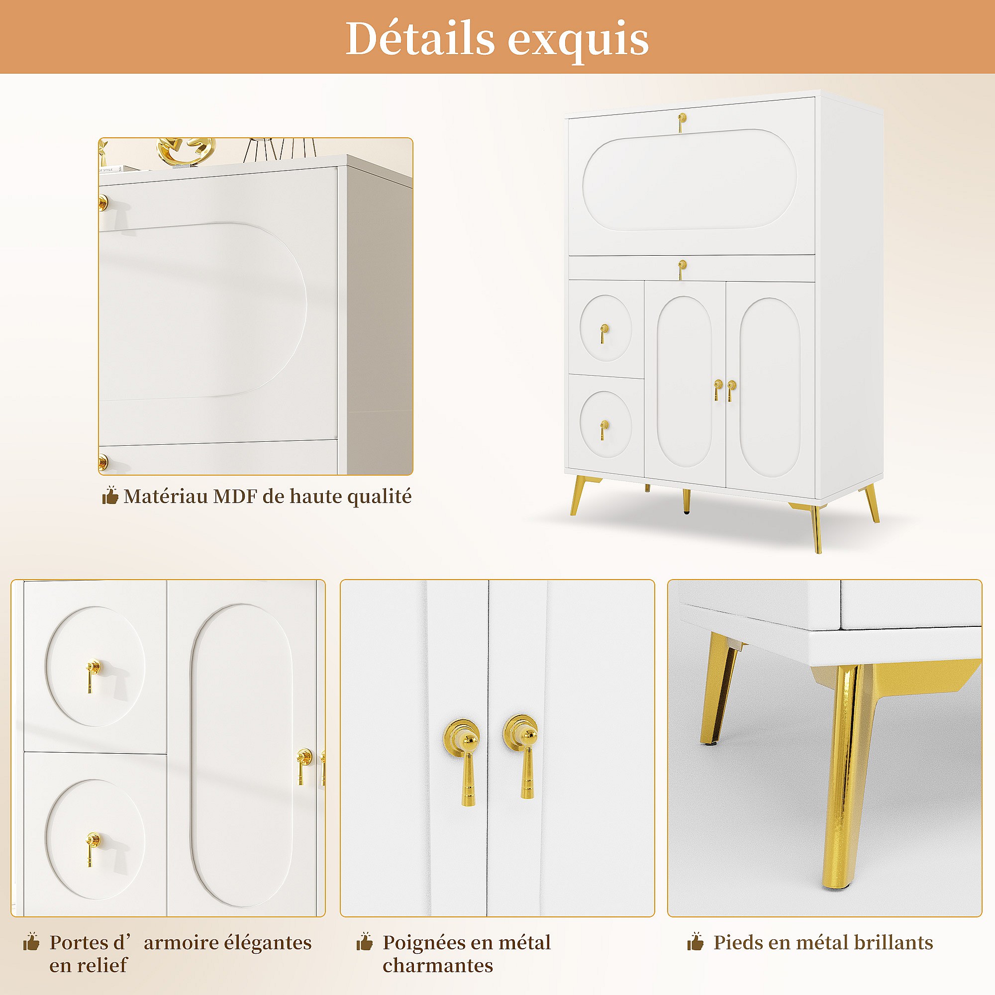 Buffet / armoire de cuisine 100×50×140 cm avec portes pliantes, Meuble moderne et multifonction pour cuisine, salle à manger et salon, Blanc