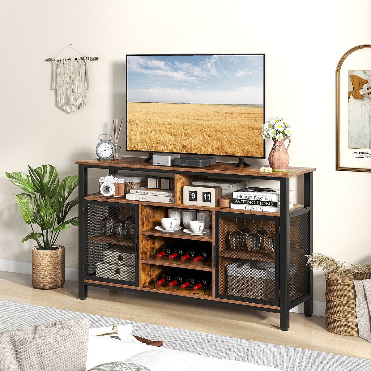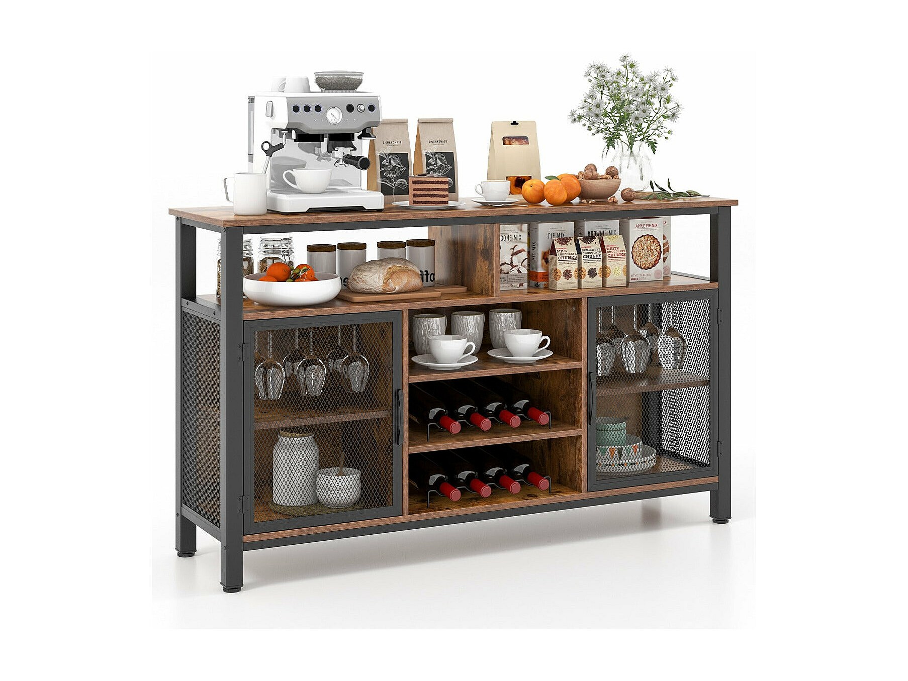 Buffet/armoire de cuisine casiers à vin 8 bouteilles 6 rangées de porte-verres 2 portes salle à manger salon marron 20_0007962