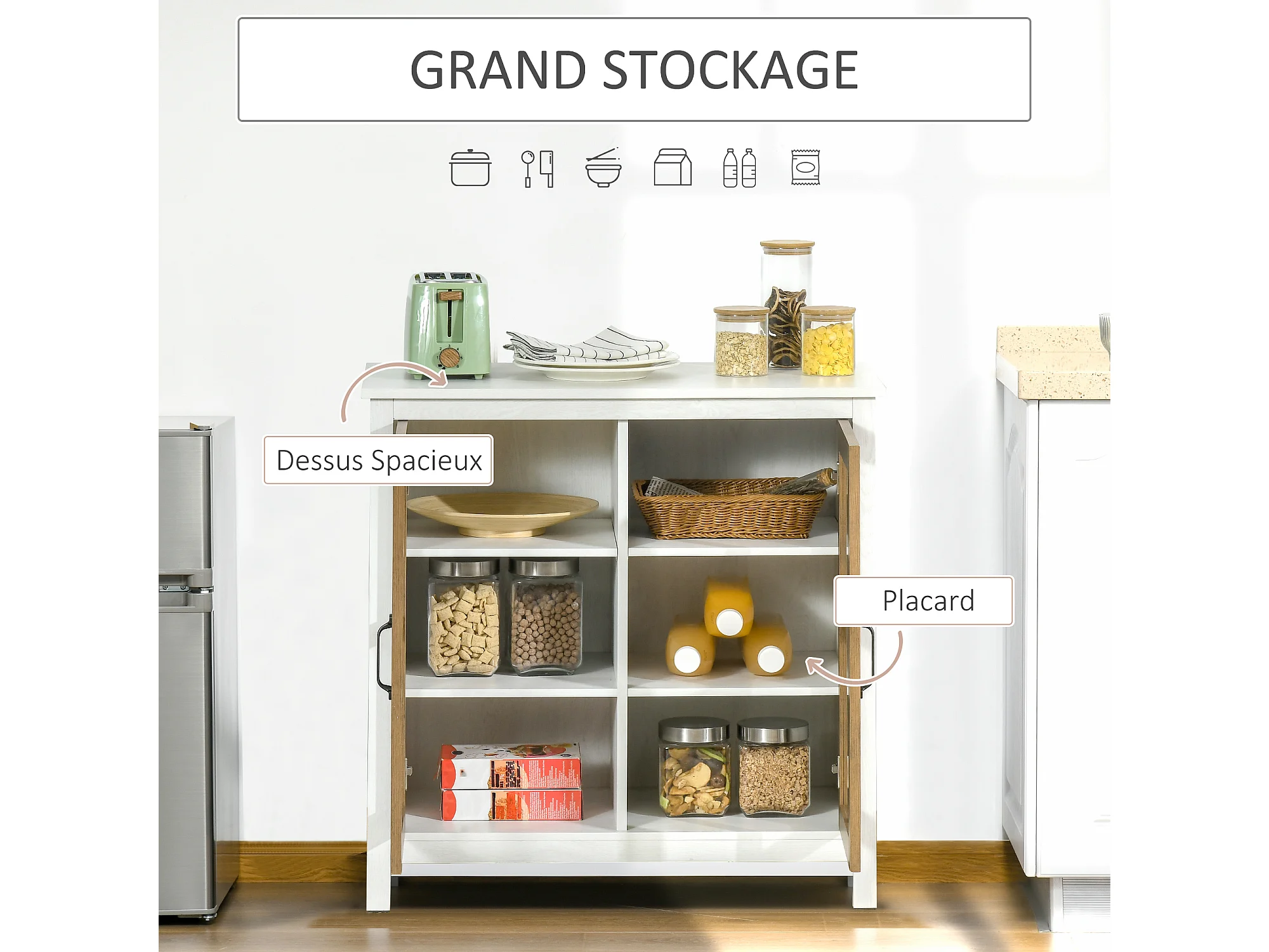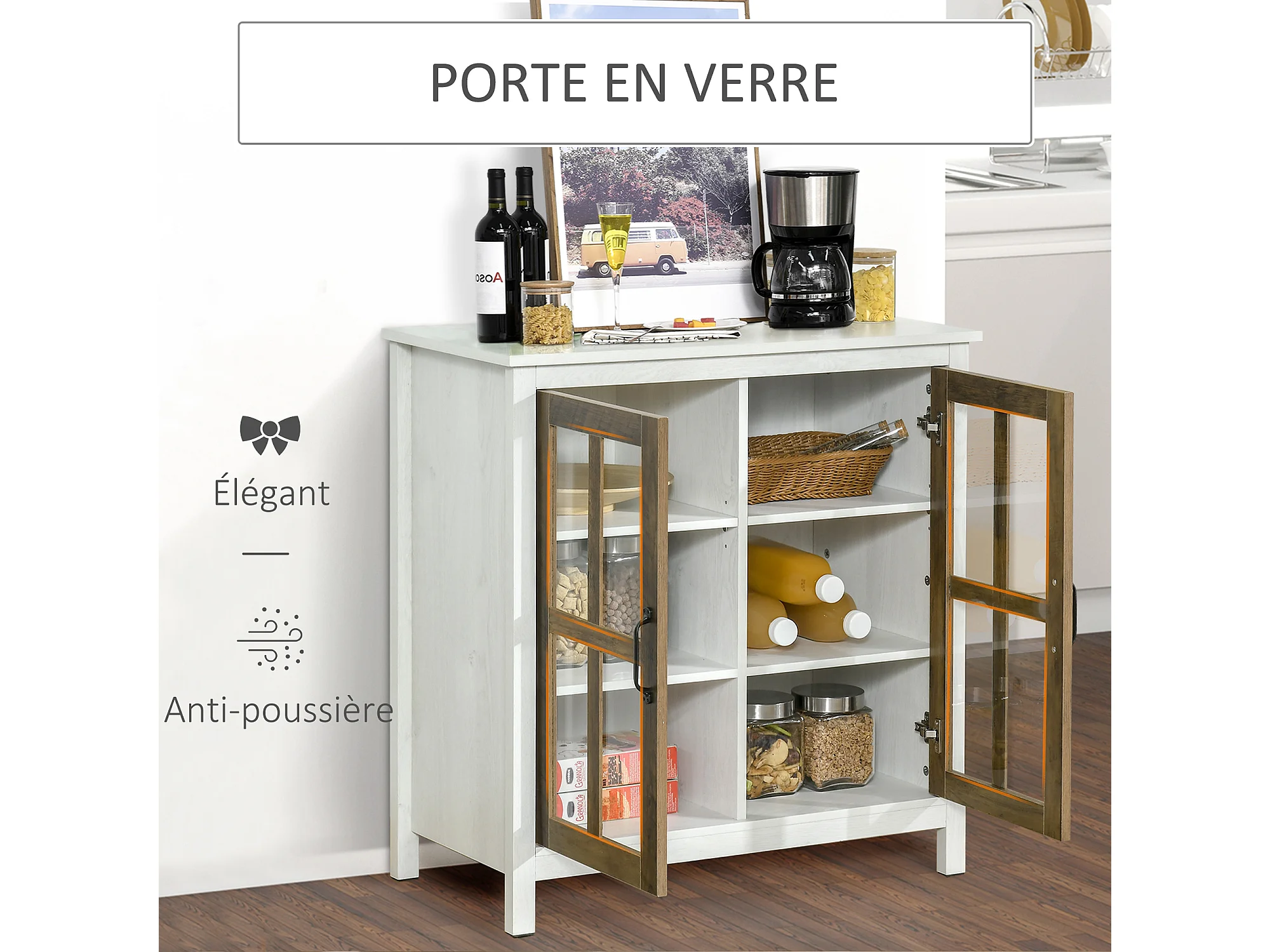 Buffet armoire de rangement - 2 portes vitrine verre, 2 étagères réglables - verre trempé panneaux particules aspect bois blanc effet céruse