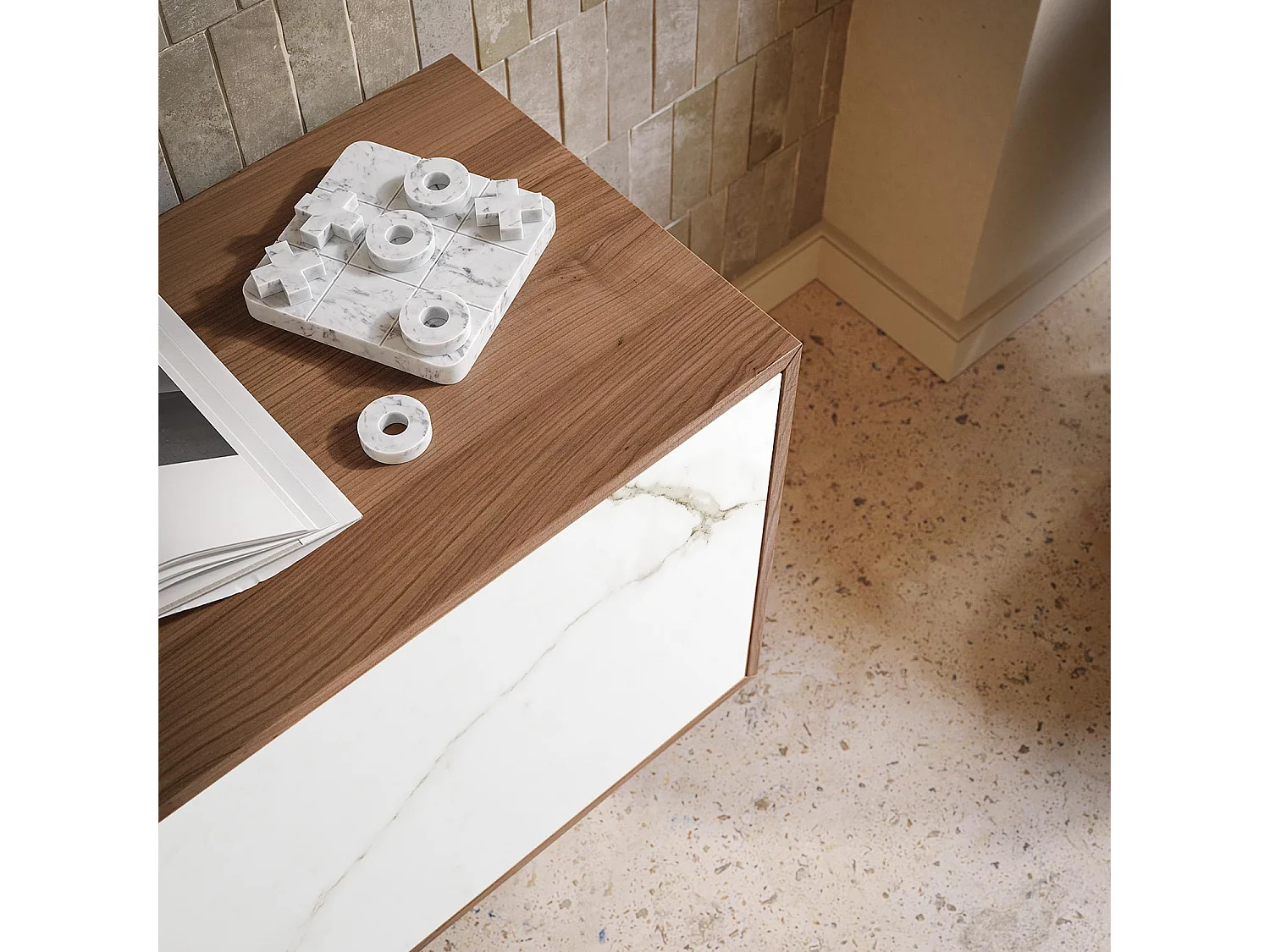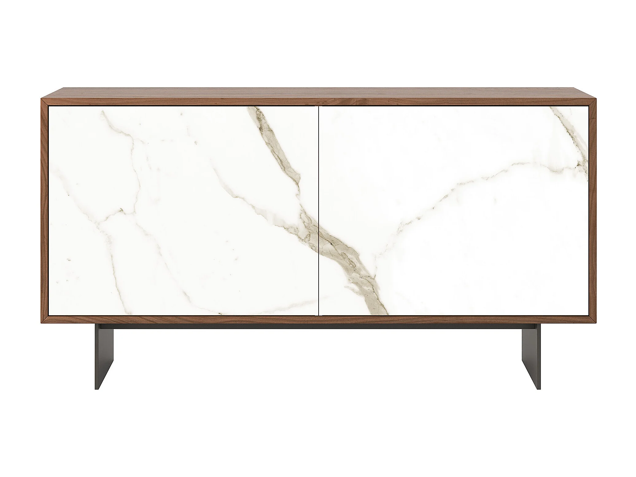Buffet aurea 2 portes - structure en noyer canaletto, gris charbon, porte en verre imprimé calcatta