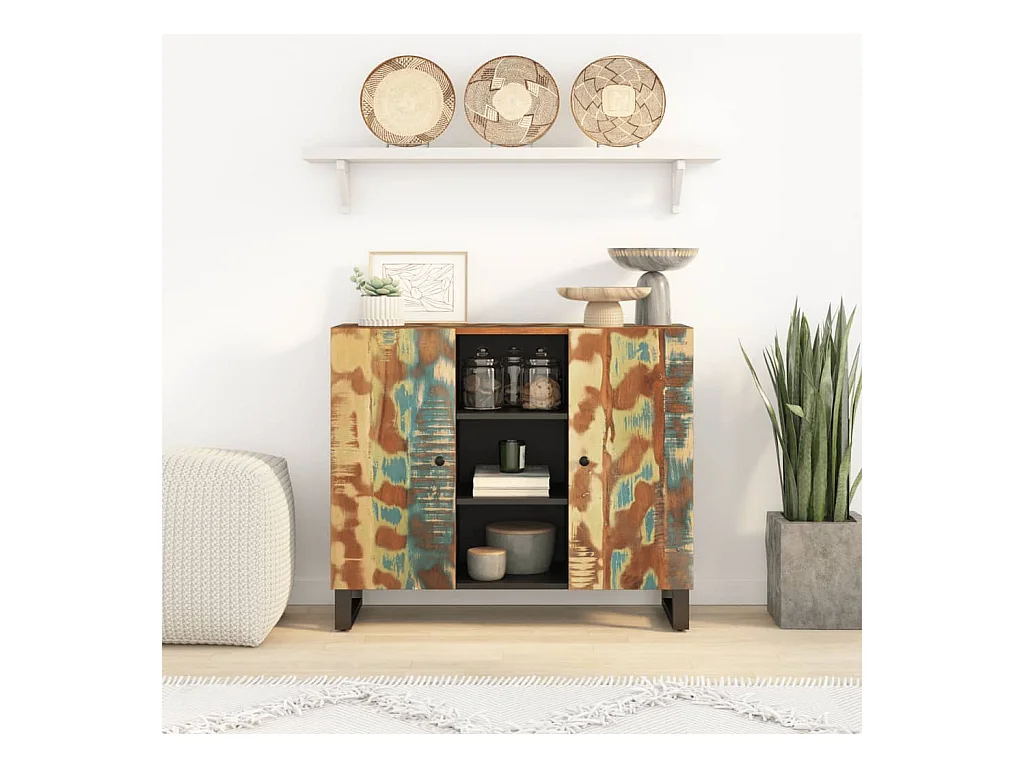 Buffet avec 2 portes 90x33x75 cm bois massif de récupération QWE46492