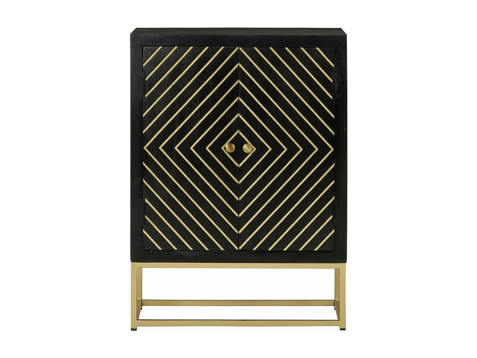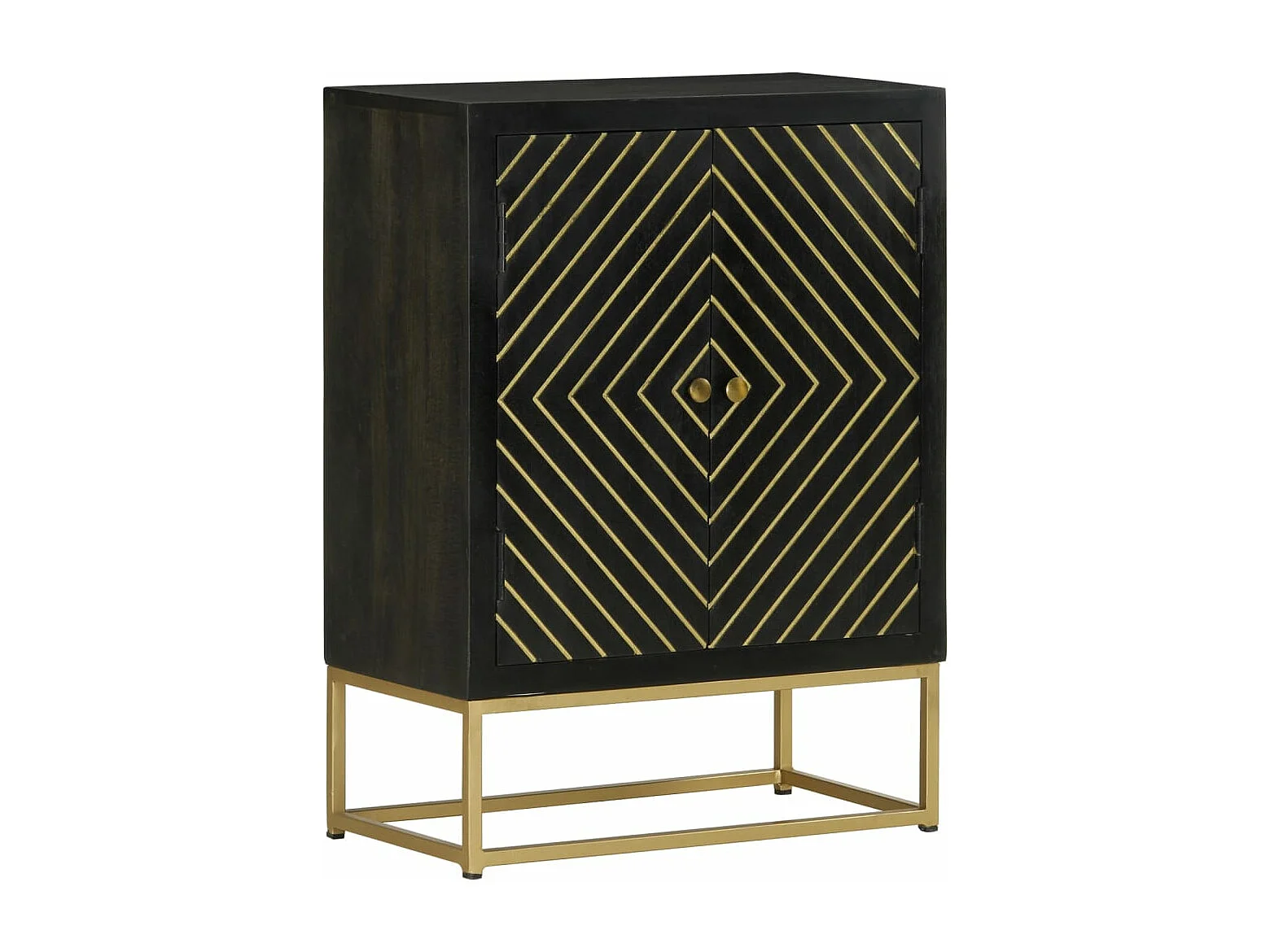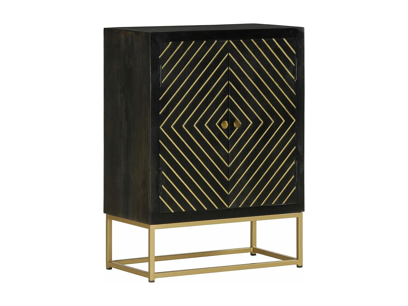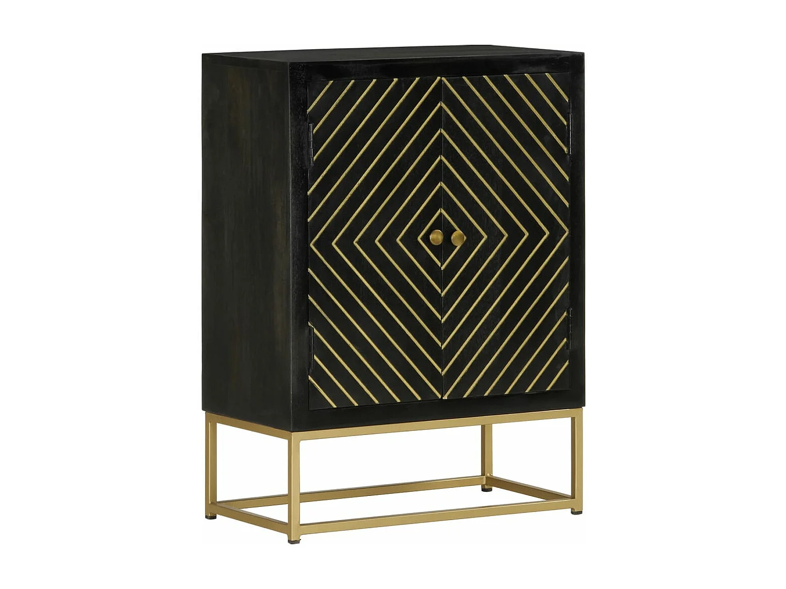Buffet avec 2 portes noir et doré 55x30x75 manguier