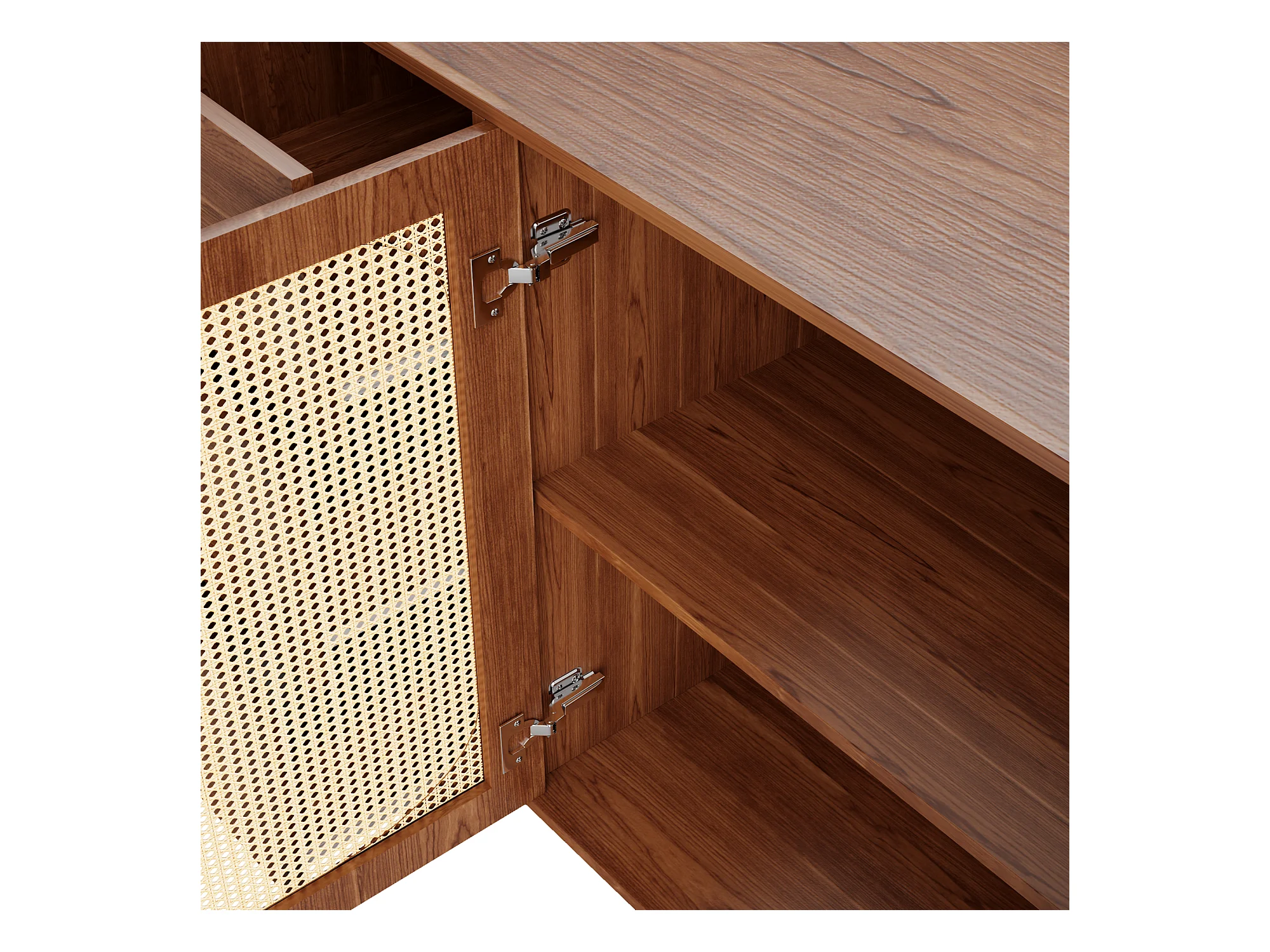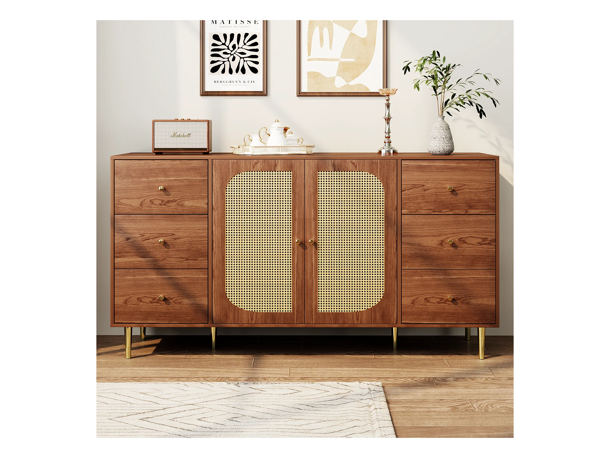 Buffet avec 2 portes rotin et 6 tiroirs - 160 x 40 x 90 cm - Pour cuisine, maison - Marron