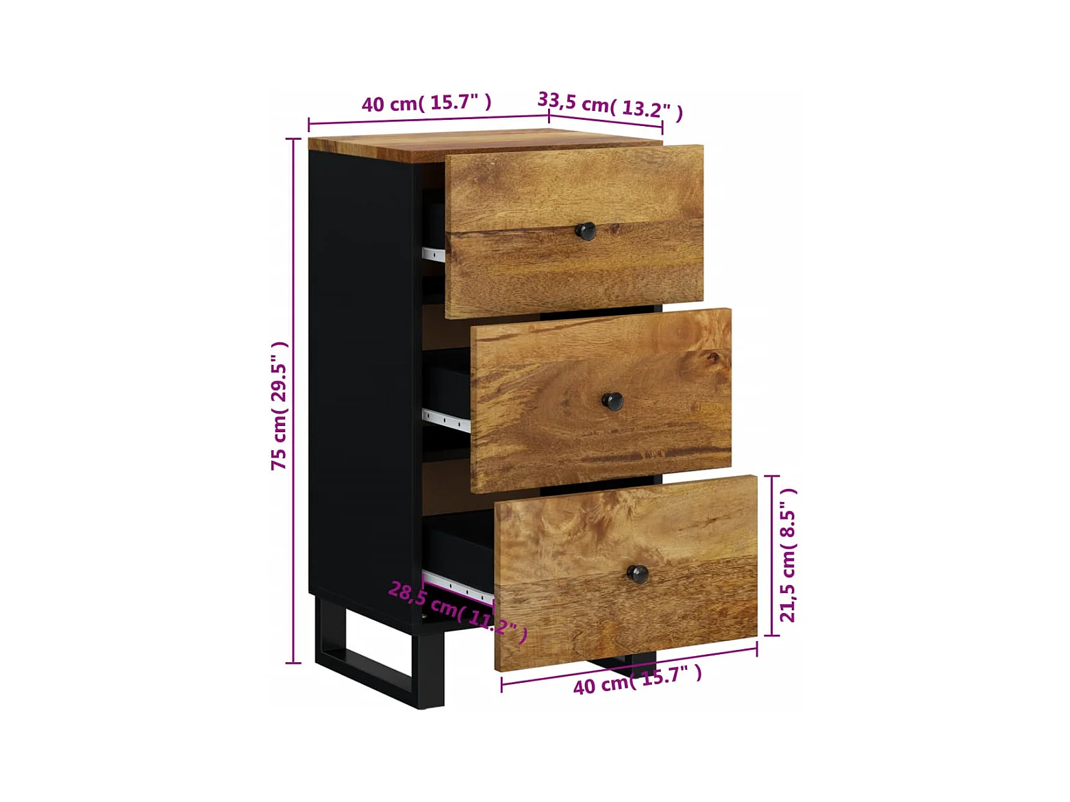 Buffet avec 3 tiroirs 40x33,5x75 cm bois massif de manguier