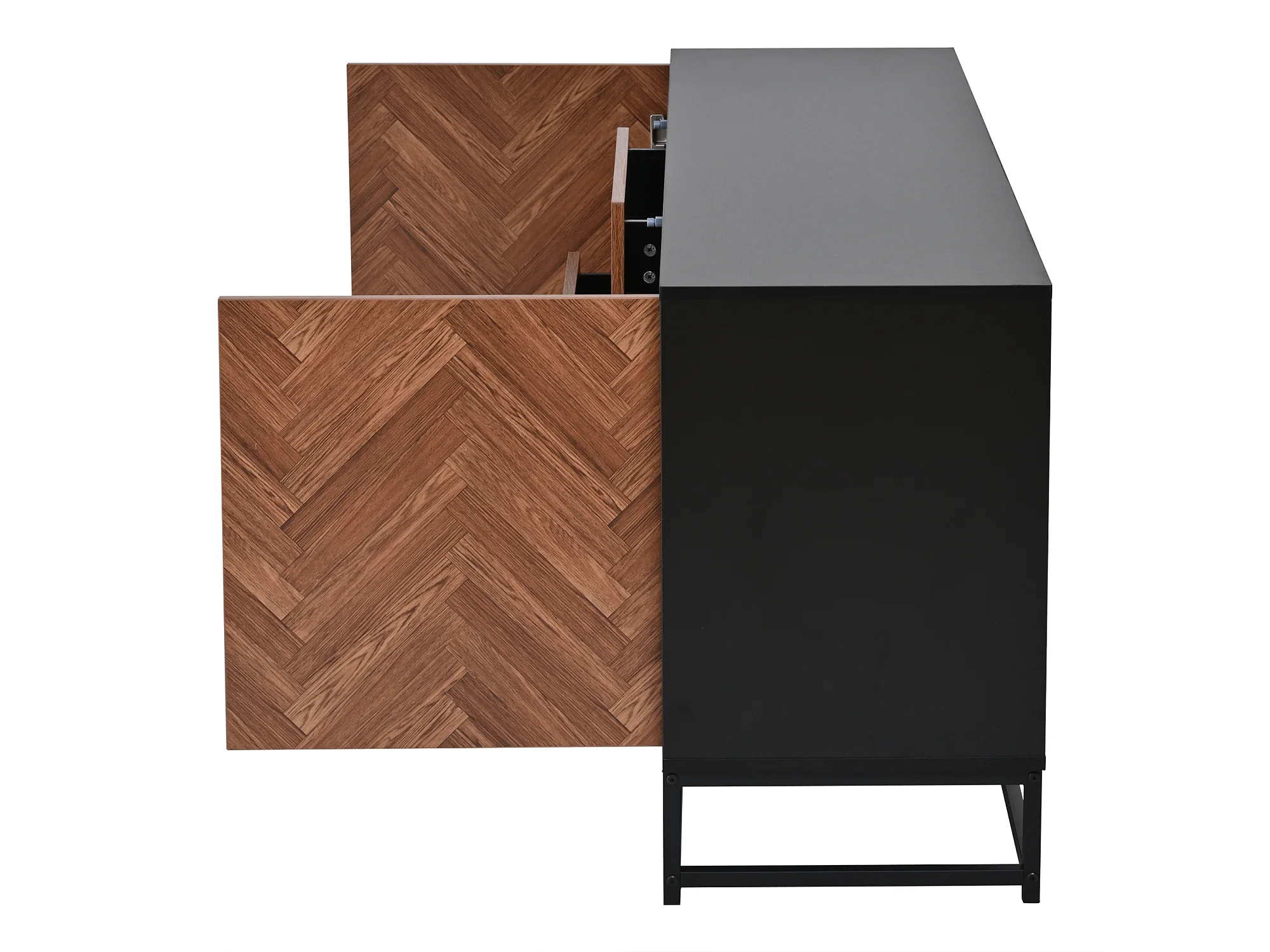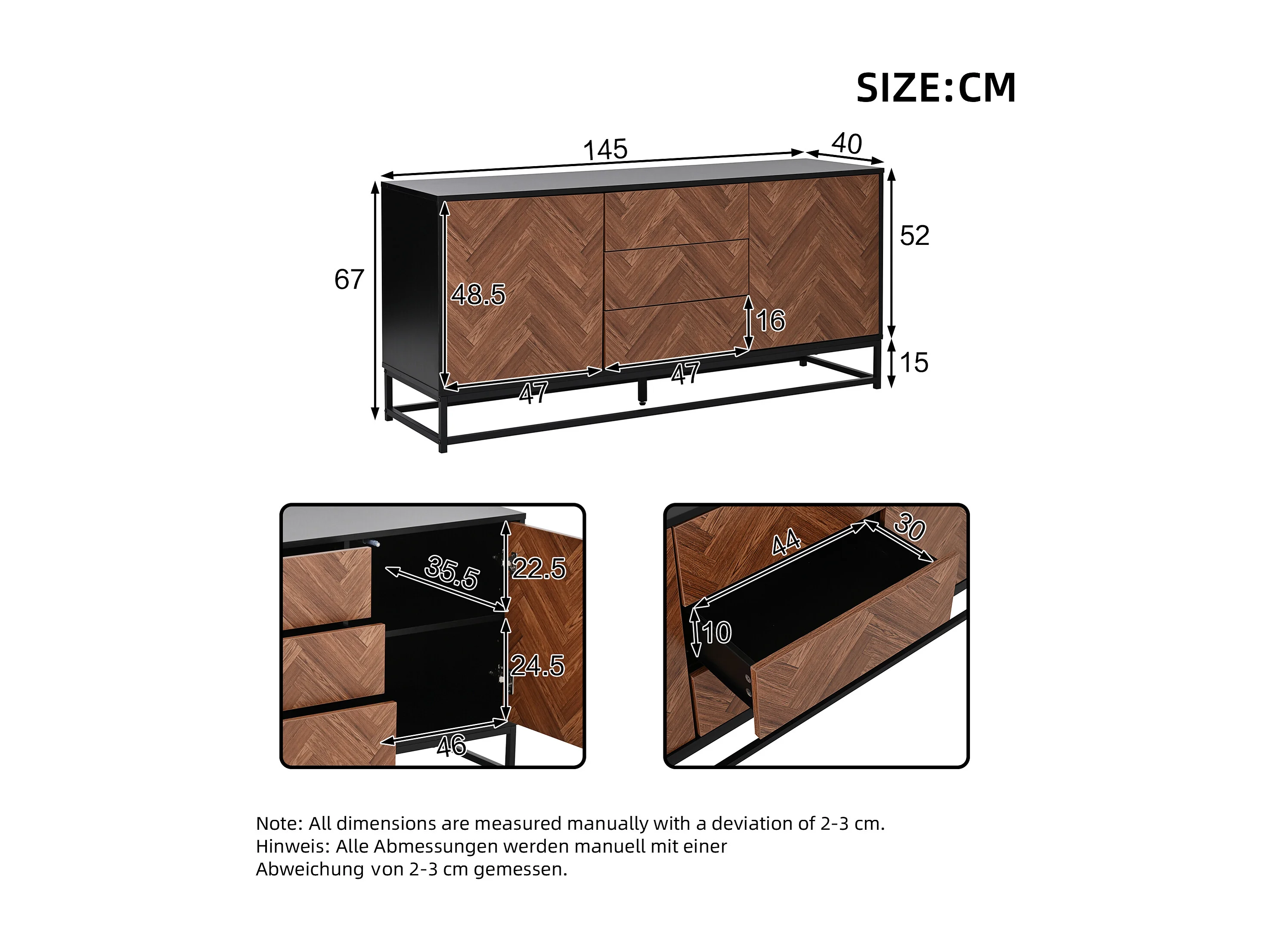 Buffet avec 3 tiroirs et 2 porte - Structure en métal - Couleur bois et noir