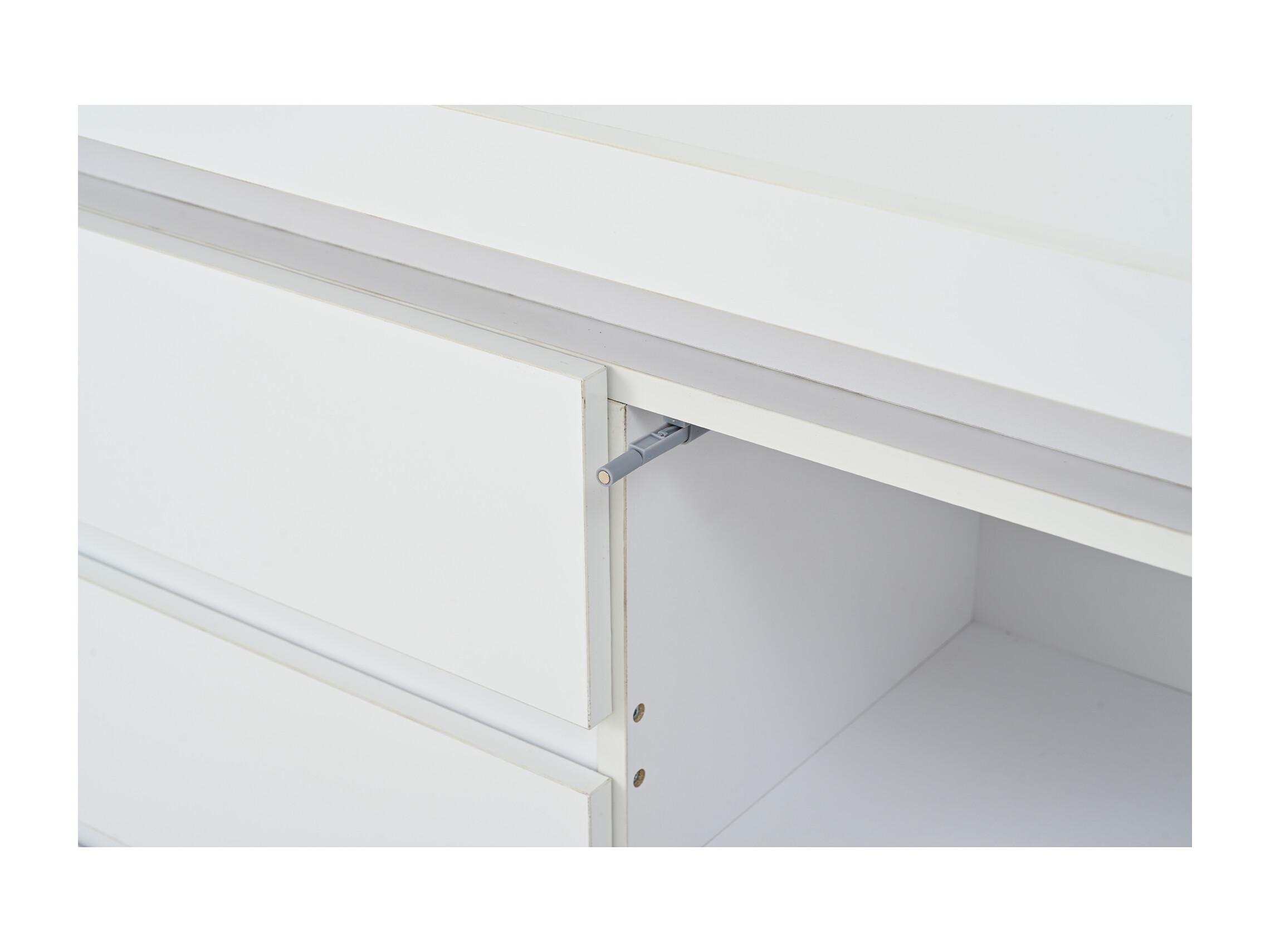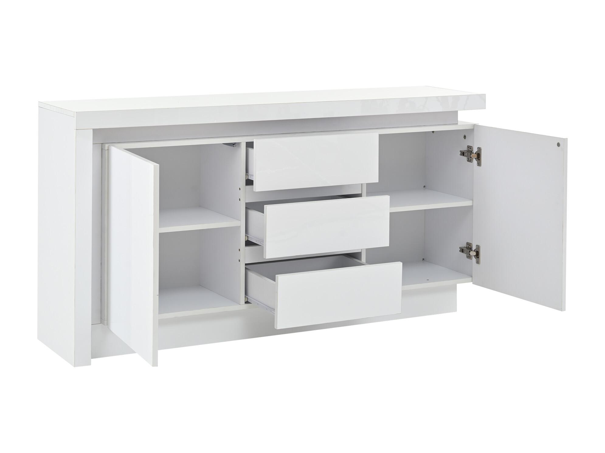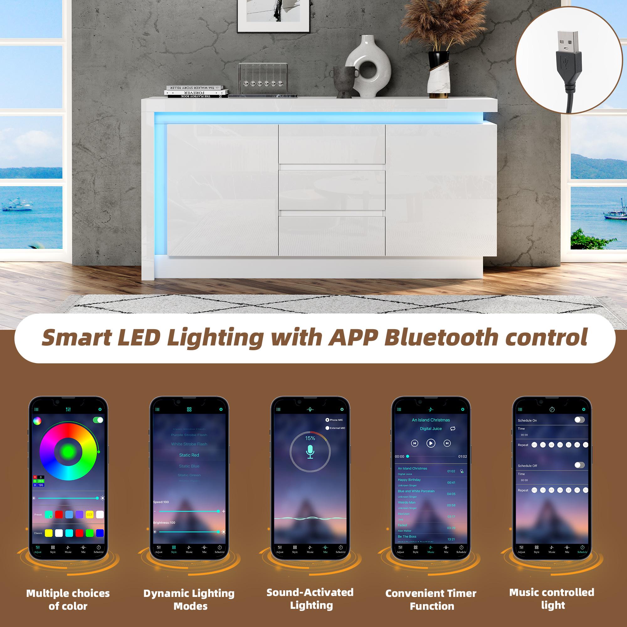 Buffet avec 3 Tiroirs Et 2 Portes, avec Éclairage LED, sans Poignées, 140 X 35 X 72,5 cm - Blanc