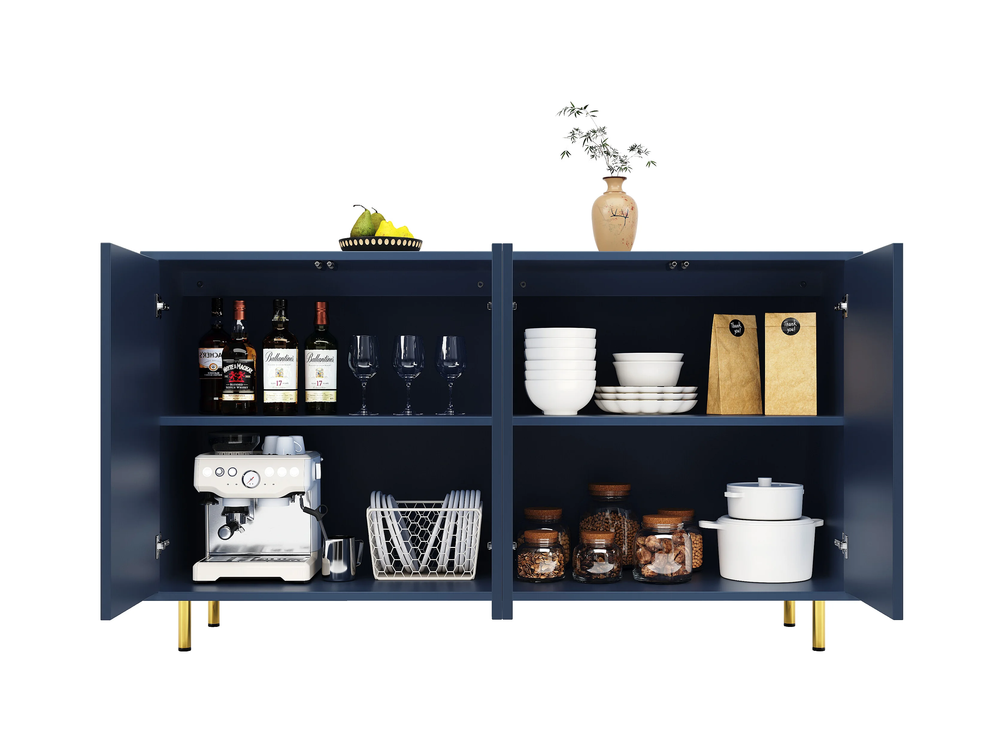 Buffet avec 4 portes - 140 x 40 x 85.9 cm - MDF + pieds en métal - pour salon, salle à manger - Noir
