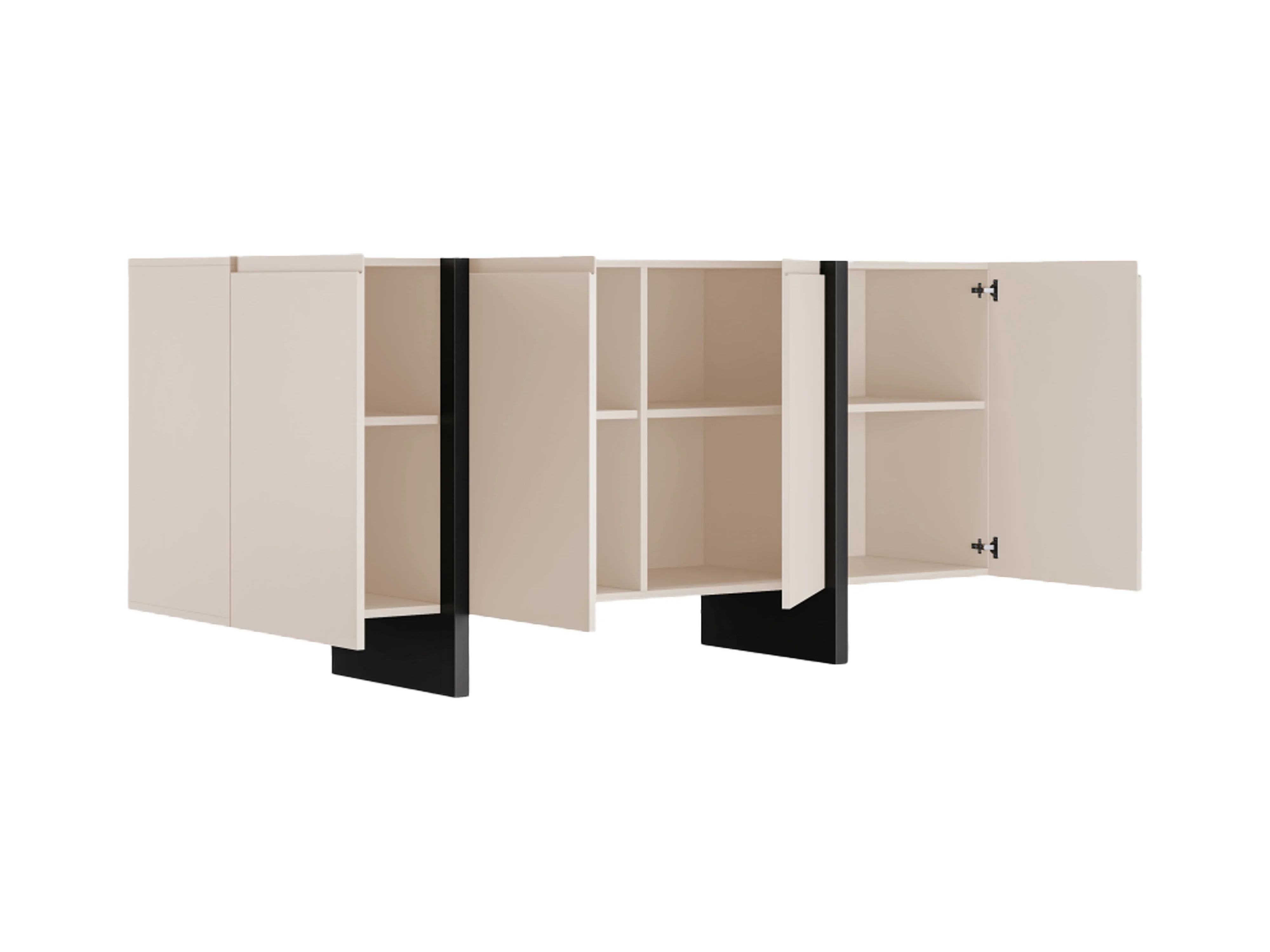 Buffet avec 4 portes en MDF - Beige et Noir - LUVONIA