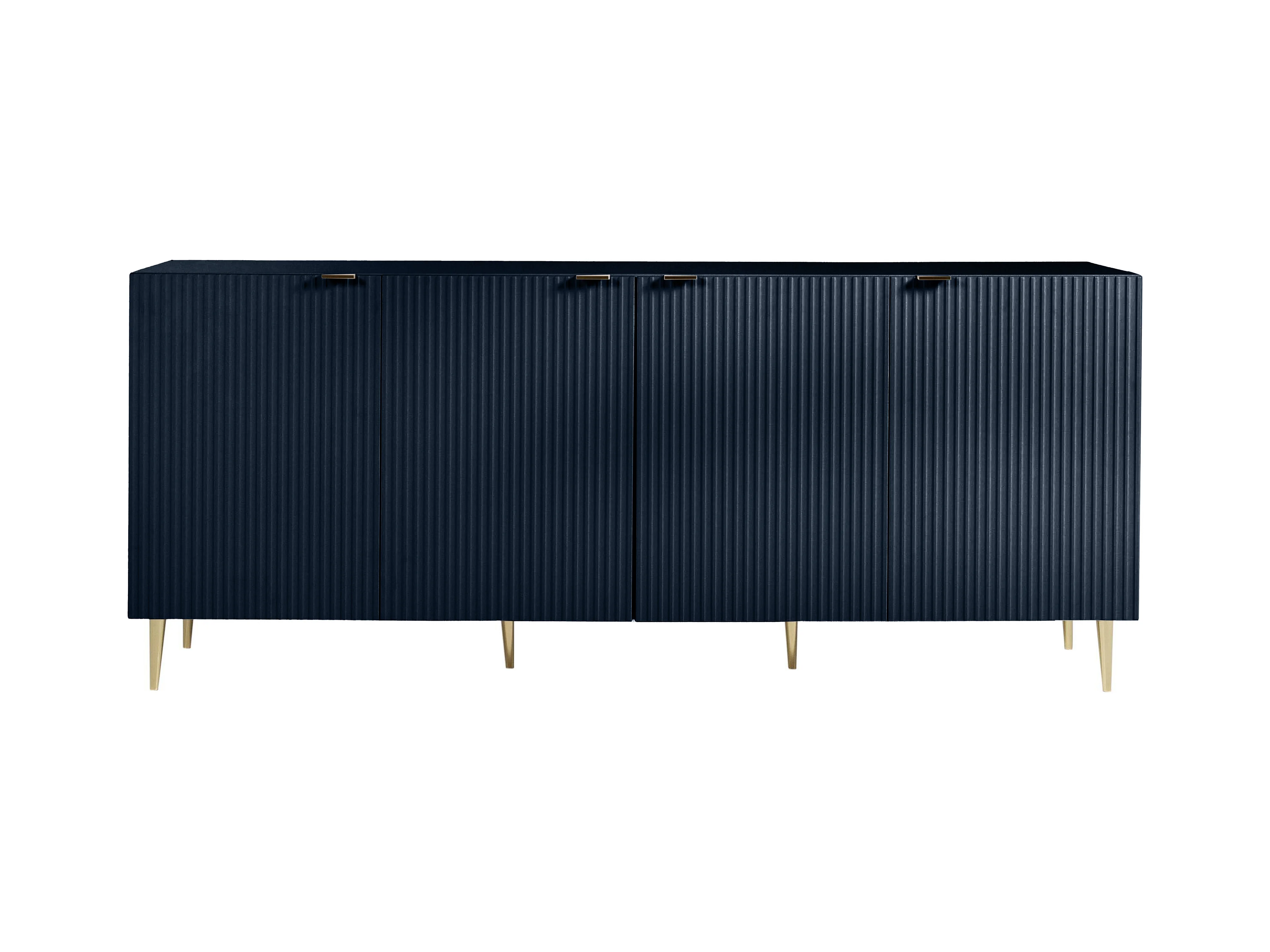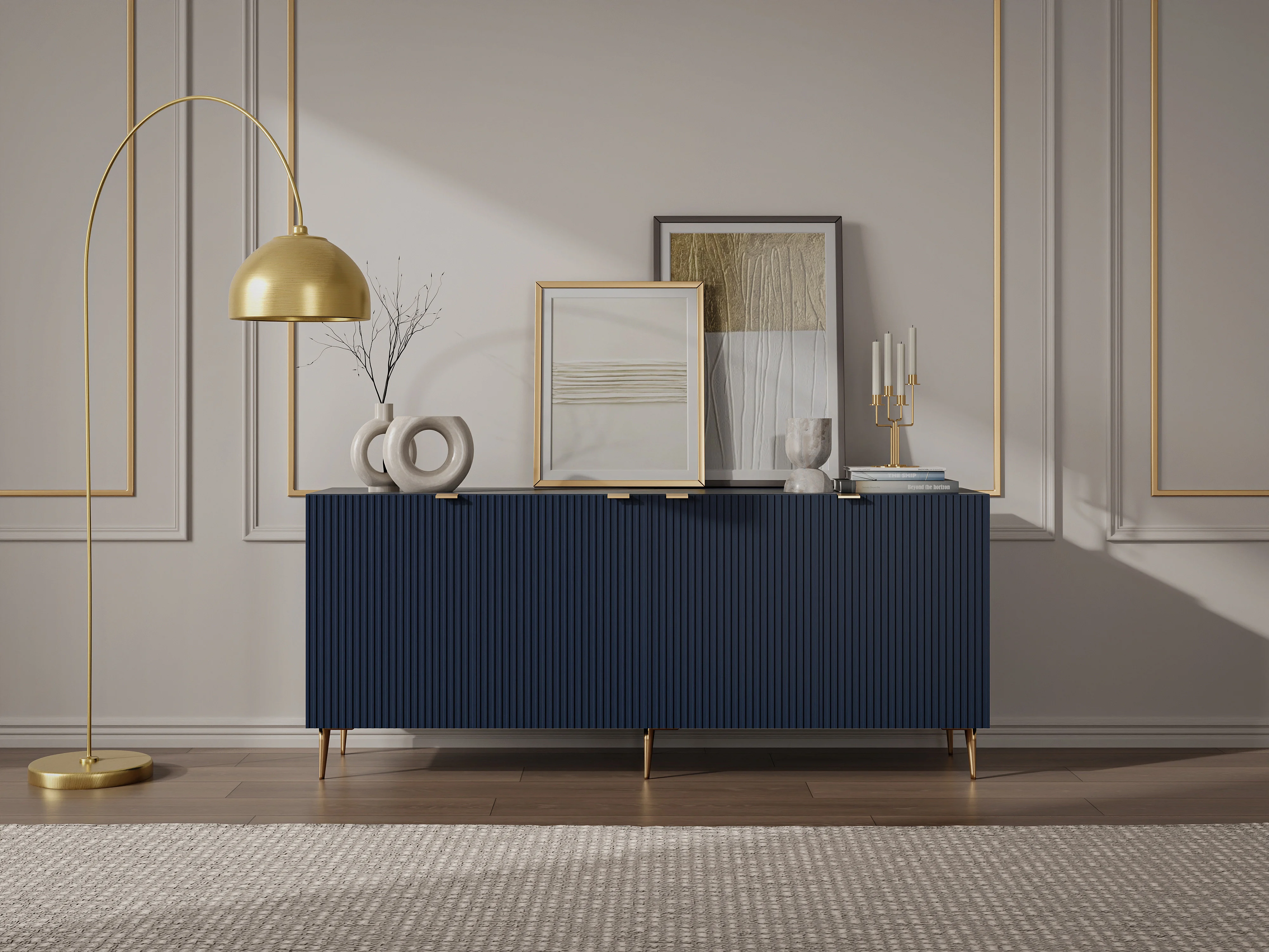 Buffet avec 4 portes en MDF et acier - Bleu et doré - YESINIA