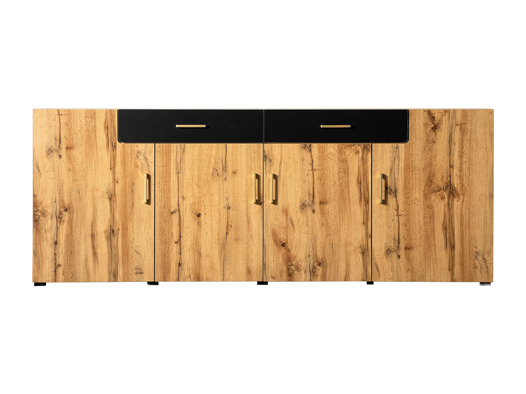 Buffet avec 4 portes et 2 tiroirs - Bois en PB - Naturel clair et noir
