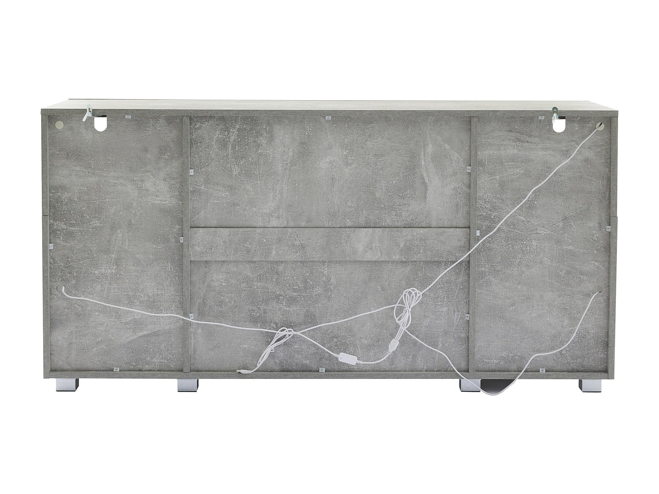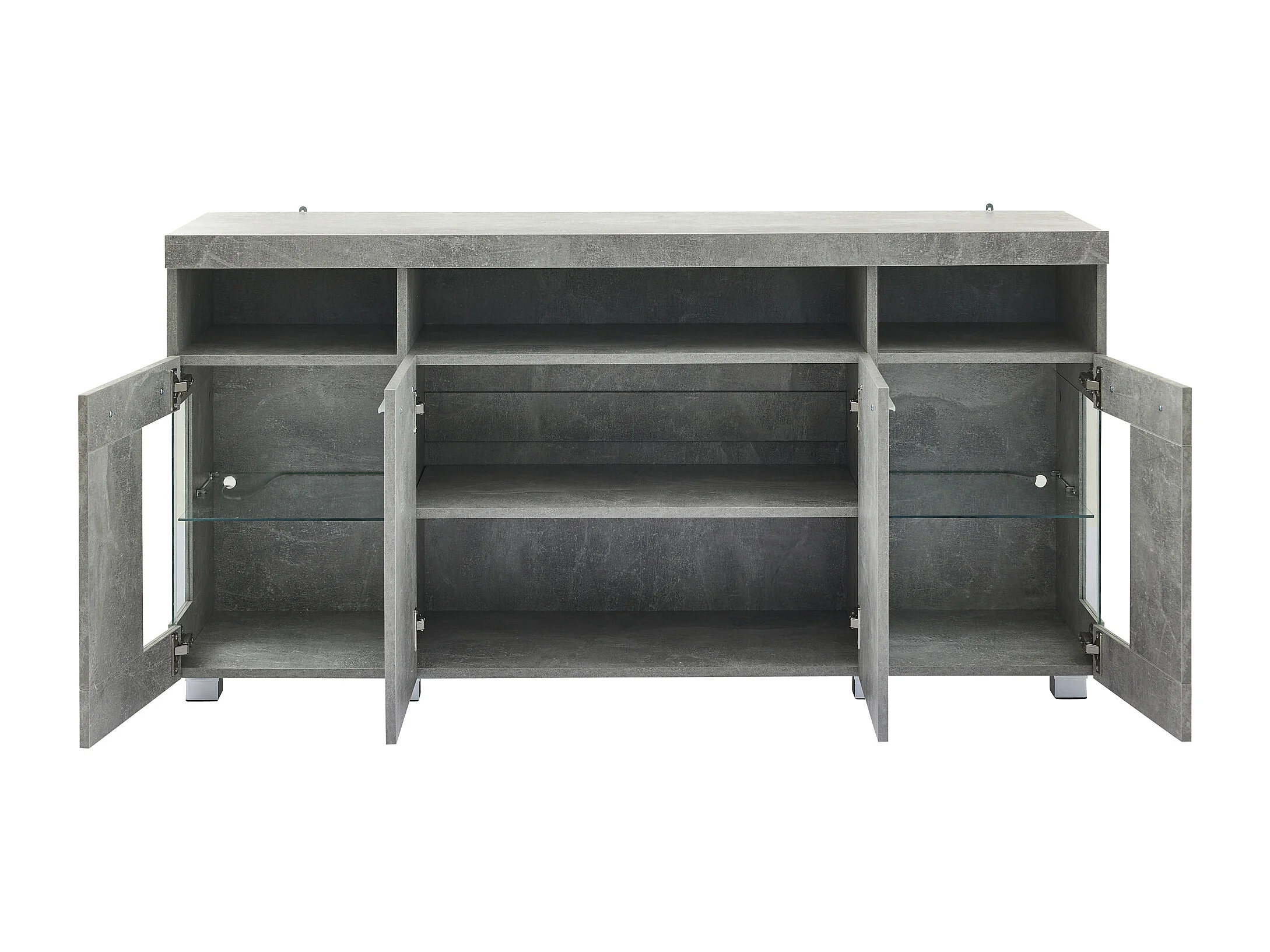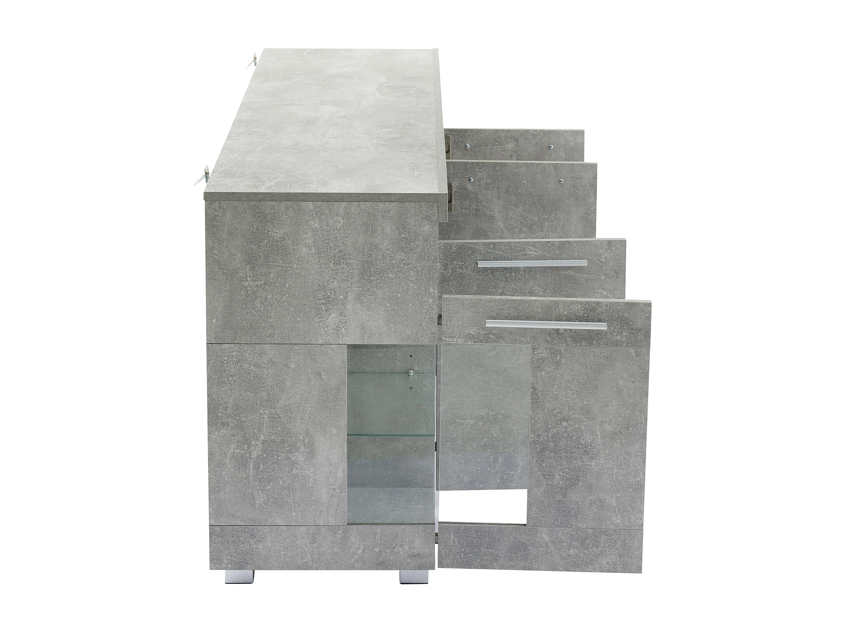 Buffet avec 4 portes et LED - Bois MDF+verre trempé - Gris ciment