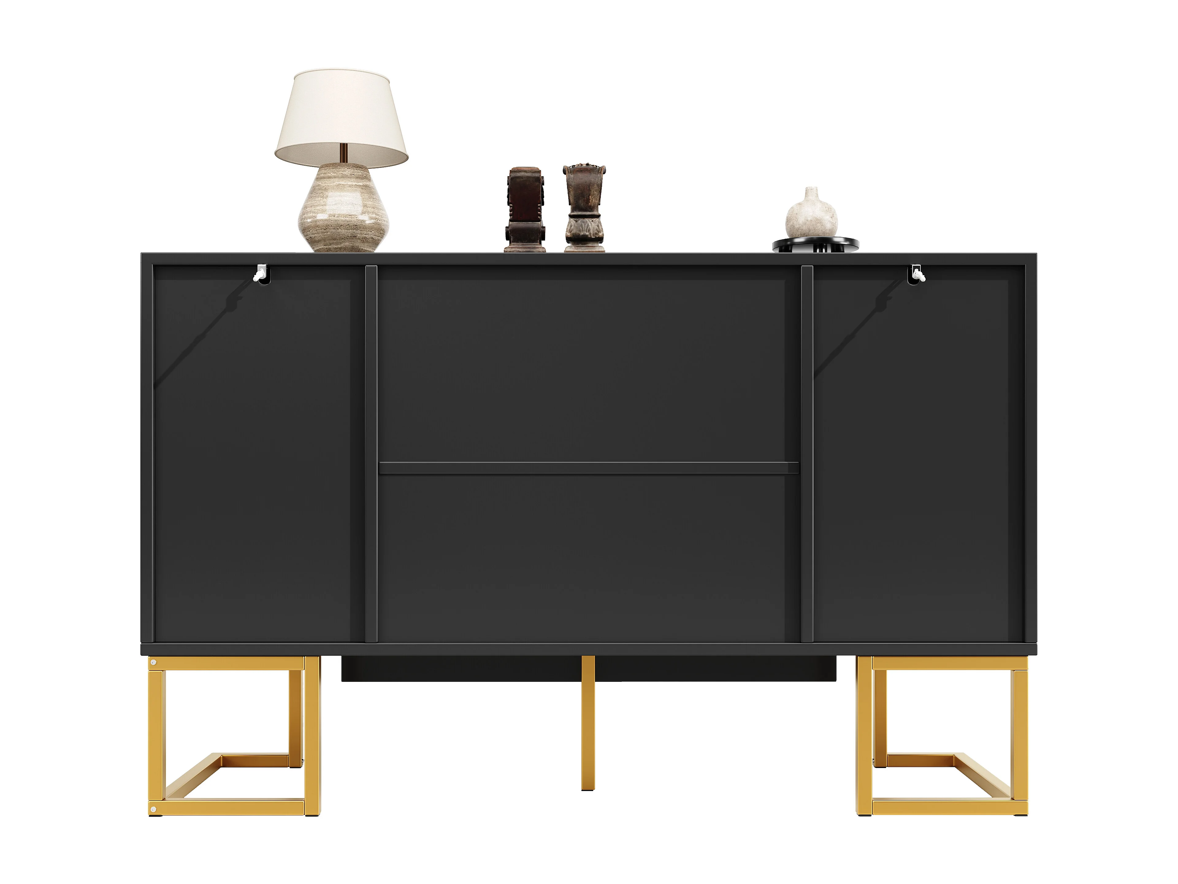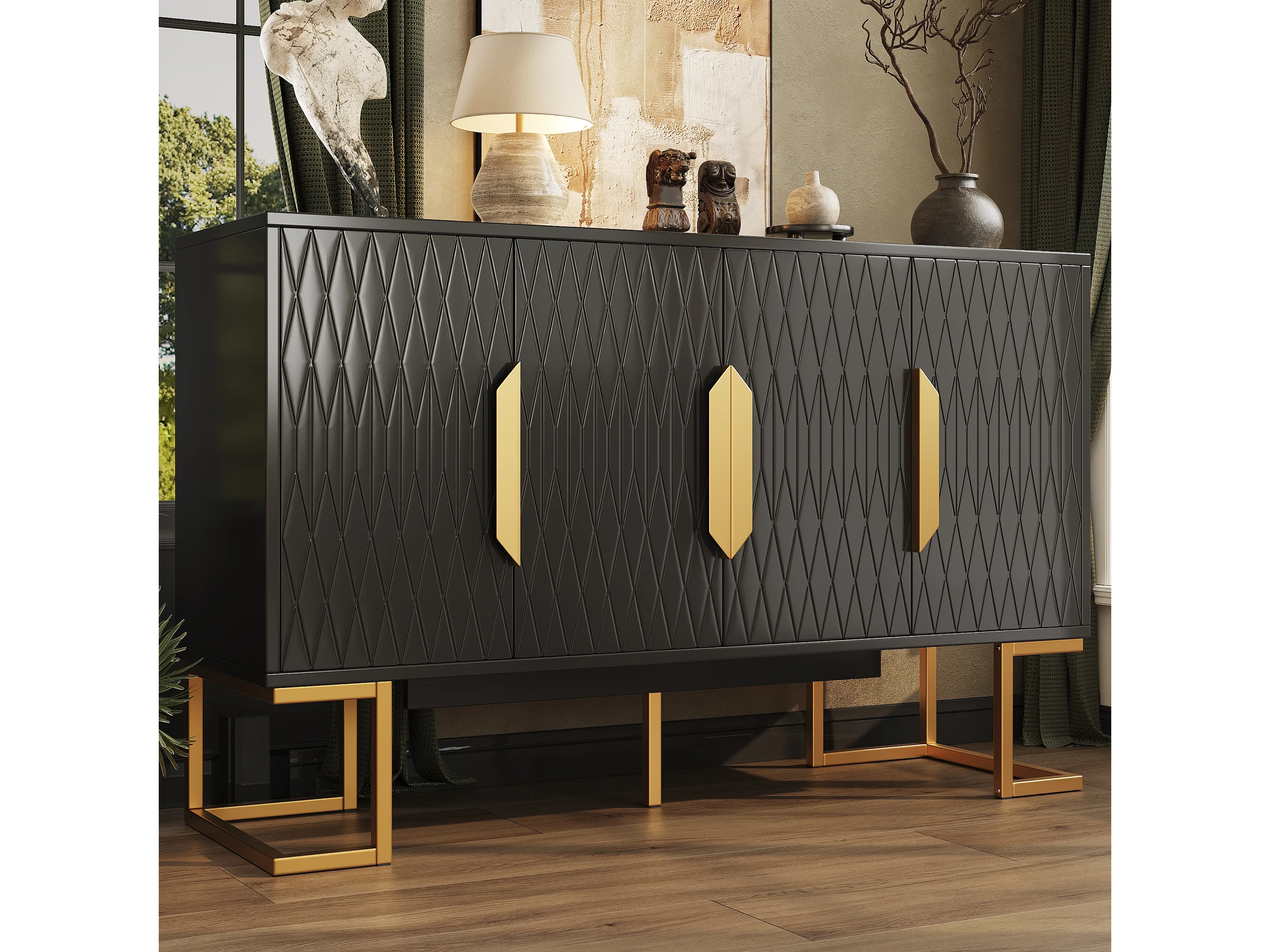 Buffet avec 4 portes - Pieds en métal doré - Étagère réglable - Noir
