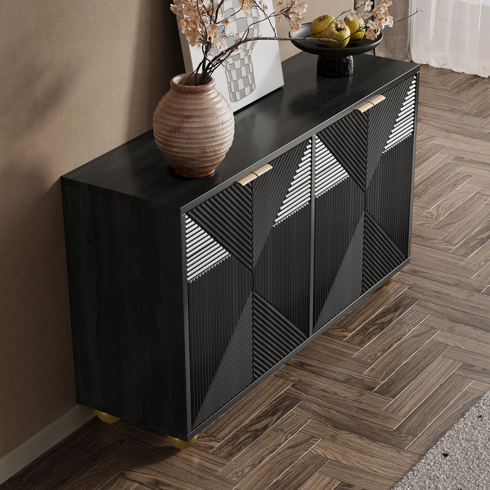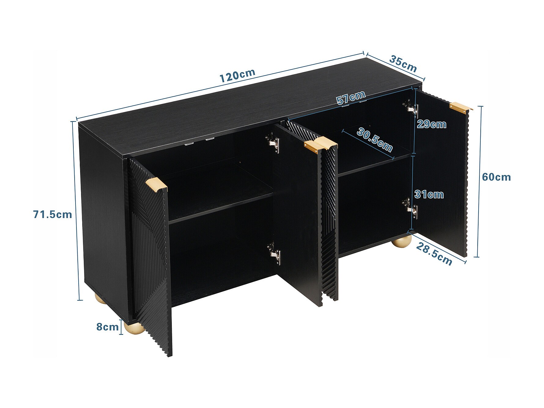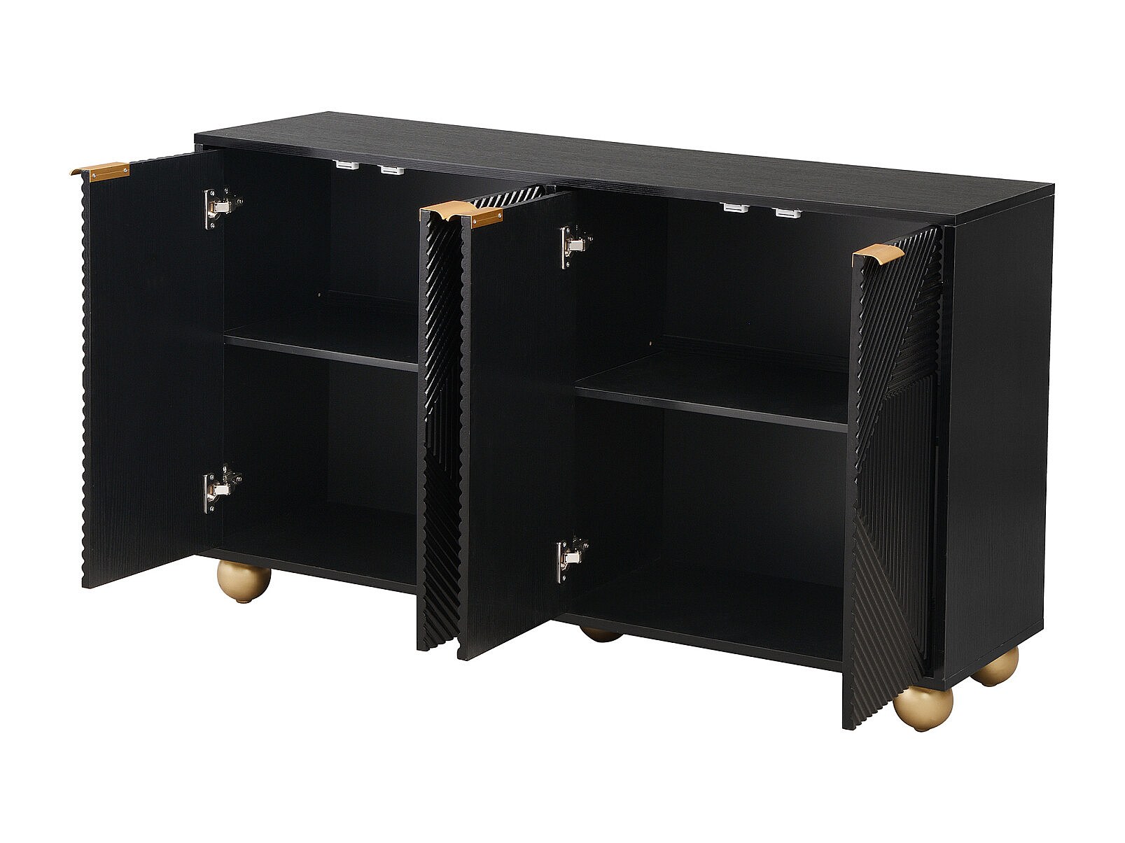 Buffet avec 4 portes sculptées – Étagères intérieures réglables, poignées en métal et pieds sphériques – Meuble design pour salon