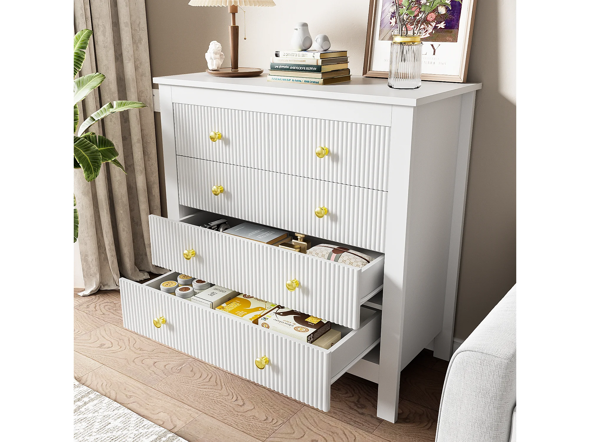 Buffet avec 5 tiroirs et portes spéciales, avec poignées dorées, en panneau de particules, blanc (79x39.5x80.5 cm)
