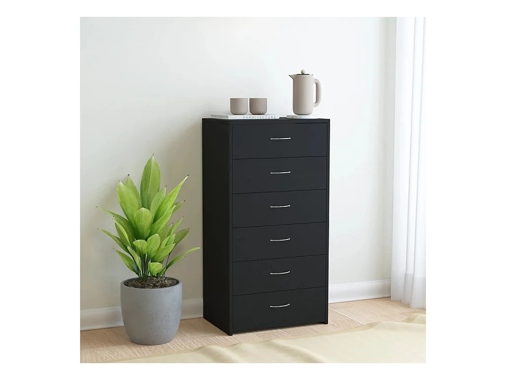 Buffet avec 6 tiroirs Noir 50x34x96 cm Aggloméré EGER94475