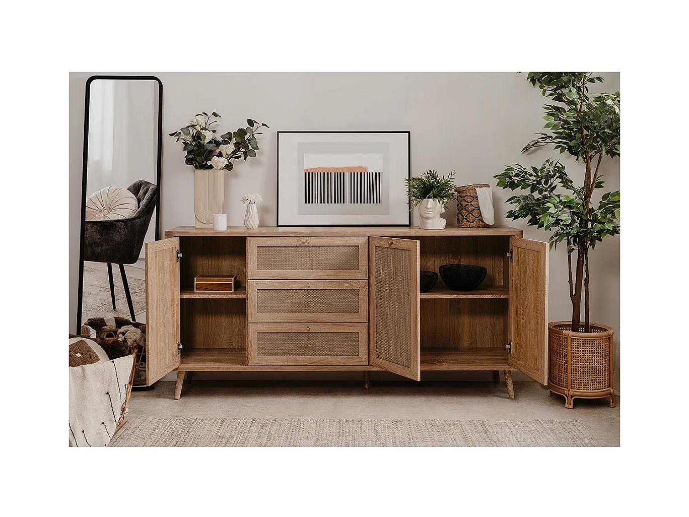 Buffet avec cannage 3 portes 3 tiroirs Kuta - L175 cm