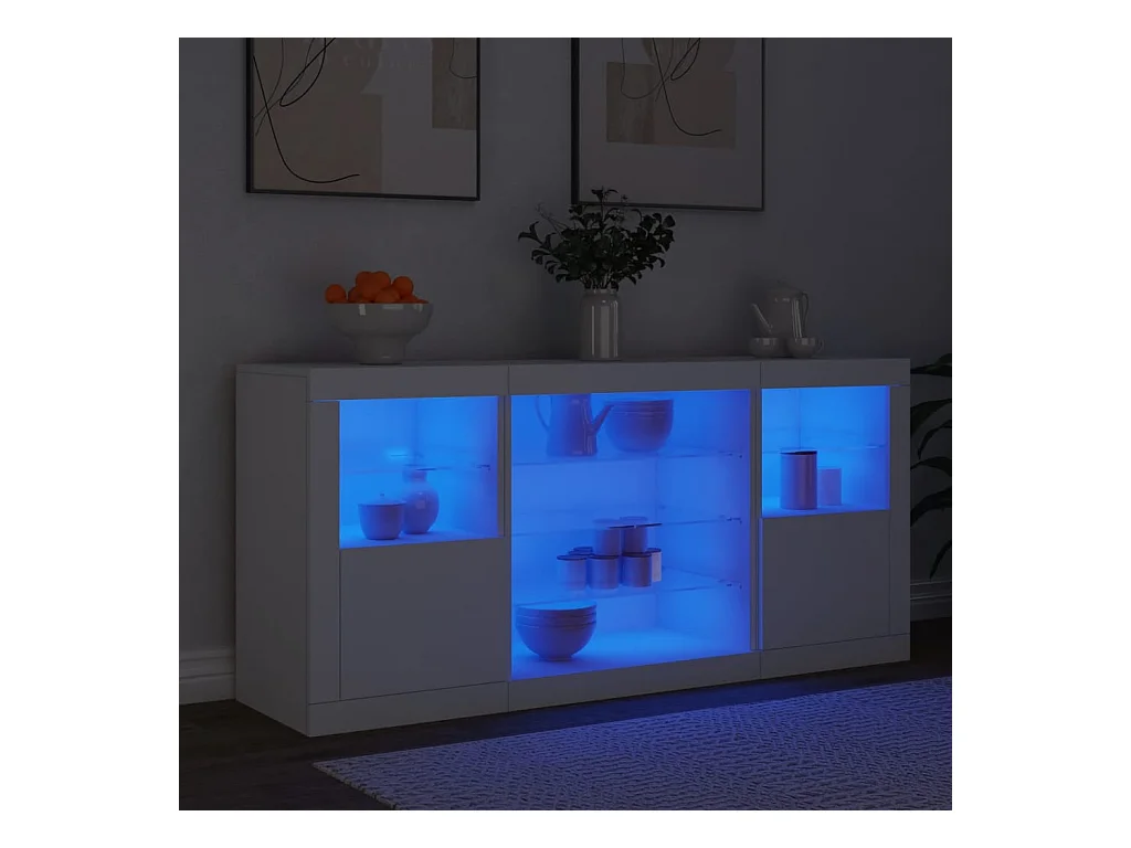 Buffet avec lumières LED blanc 142,5x37x67 cm FR54076