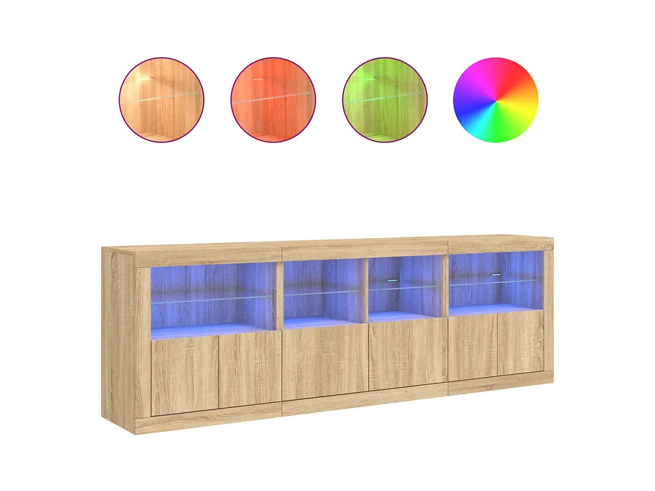 Buffet avec lumières LED chêne sonoma 202x37x67