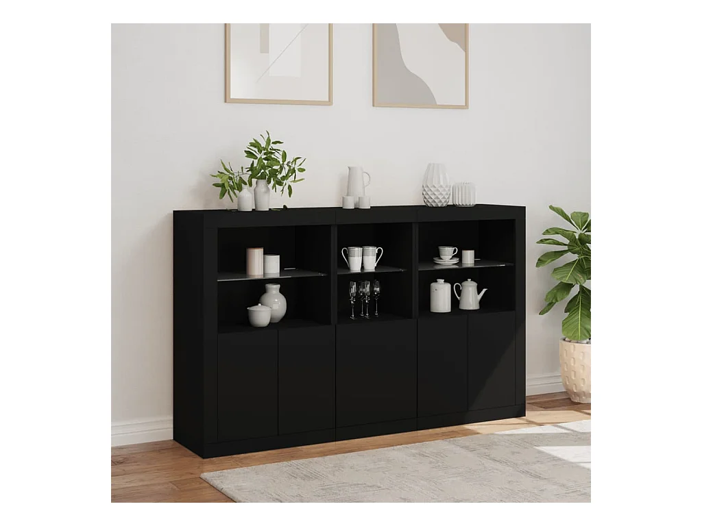 Buffet avec lumières LED noir 162x37x100