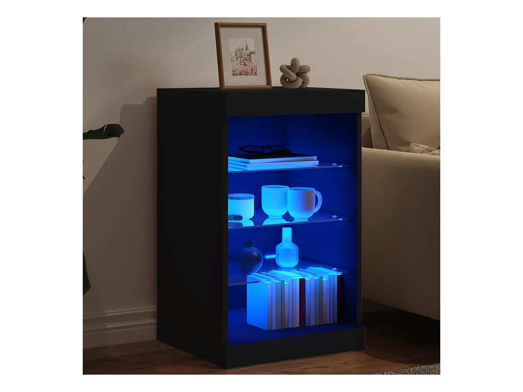 Petit meuble 2 portes et niches éclairage LED - Collection Arizona-Couleur Noir