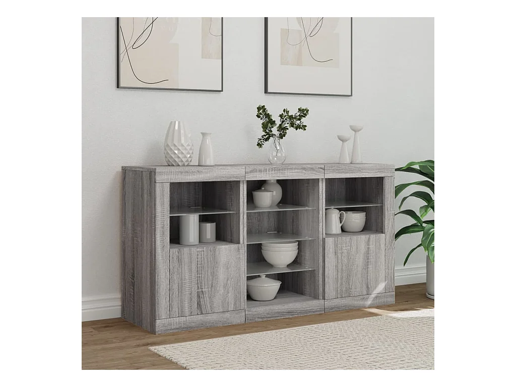 Buffet avec lumières LED sonoma gris 123x37x67 cm FR36618