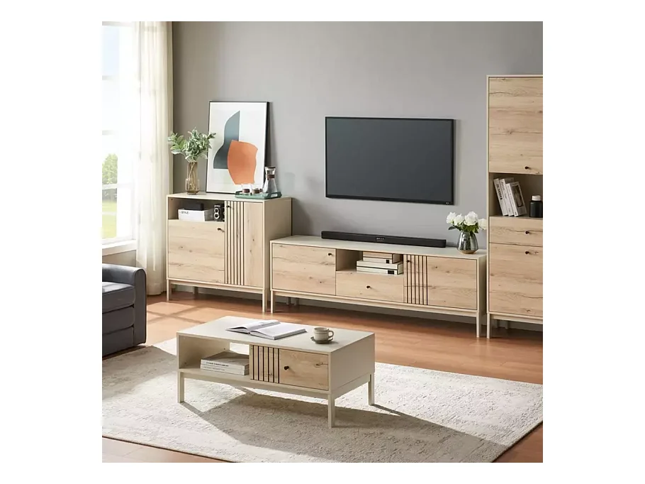 Buffet avec niche chat chêne alpin et blanc cassé – Collection FARGOL4