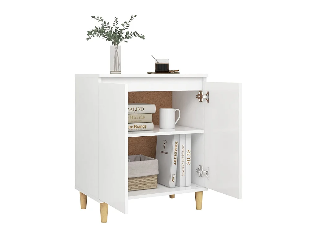 Commode avec pieds en bois Blanc brillant 60x35x70