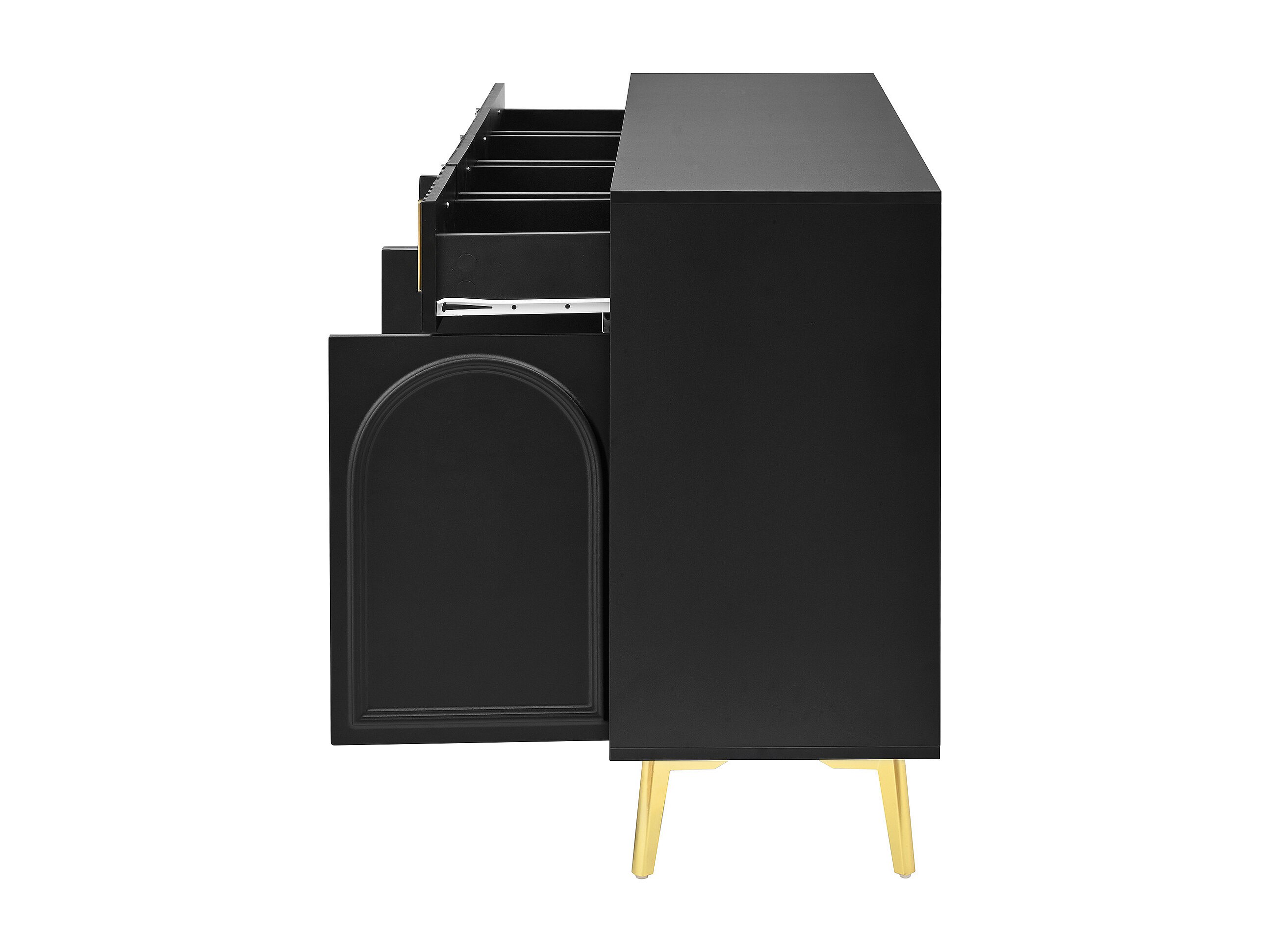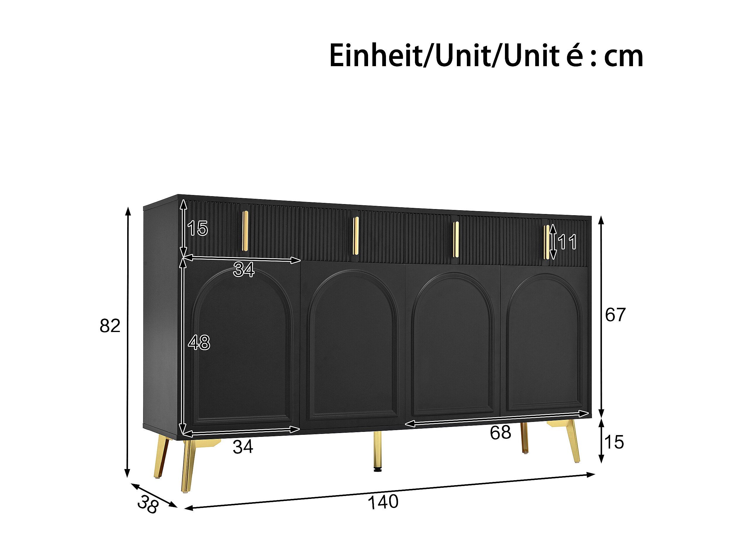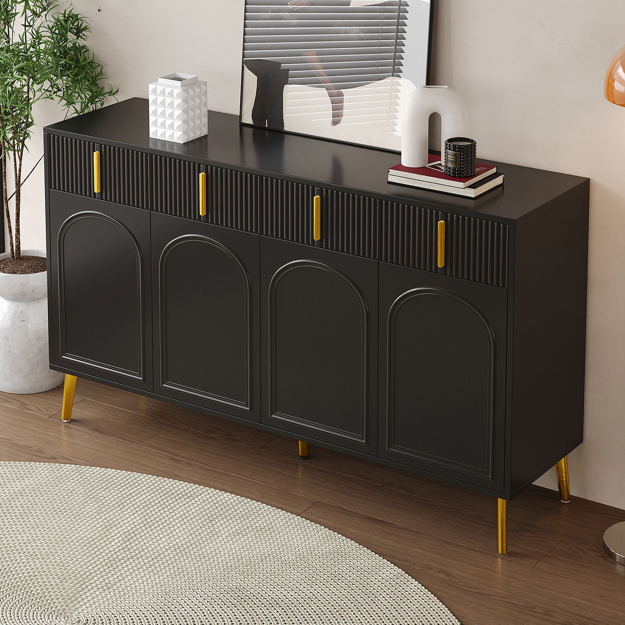 Buffet avec poignées et pieds dorés, 4 portes et 4 tiroirs, étagères amovibles, grand espace de rangement, idéal salon et salle à manger