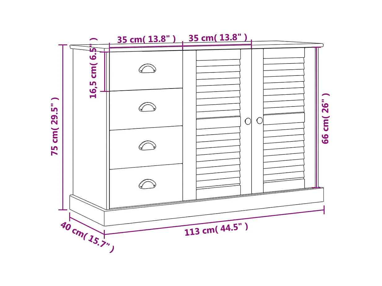Buffet avec tiroirs VIGO 113x40x75 bois massif de pin