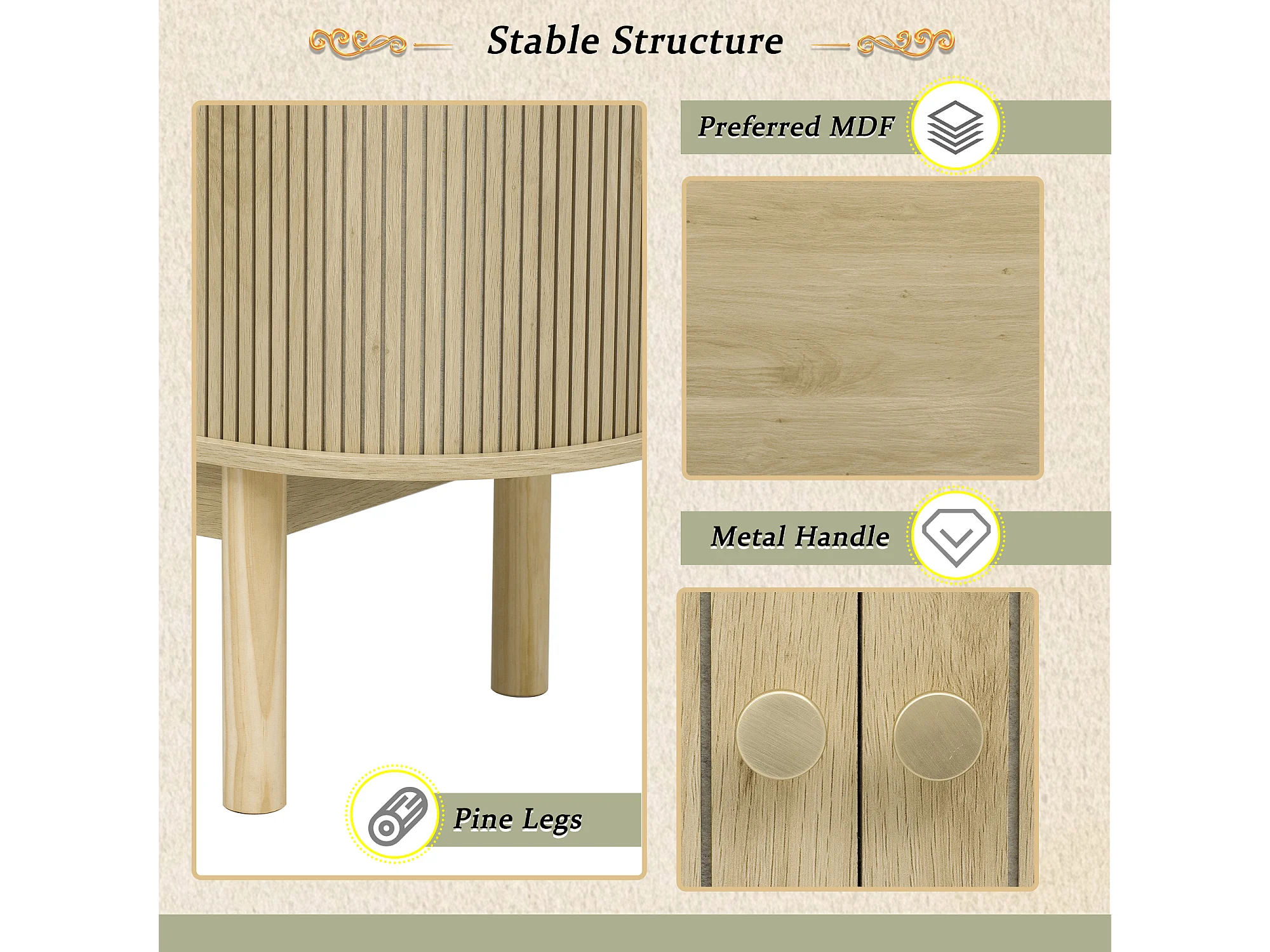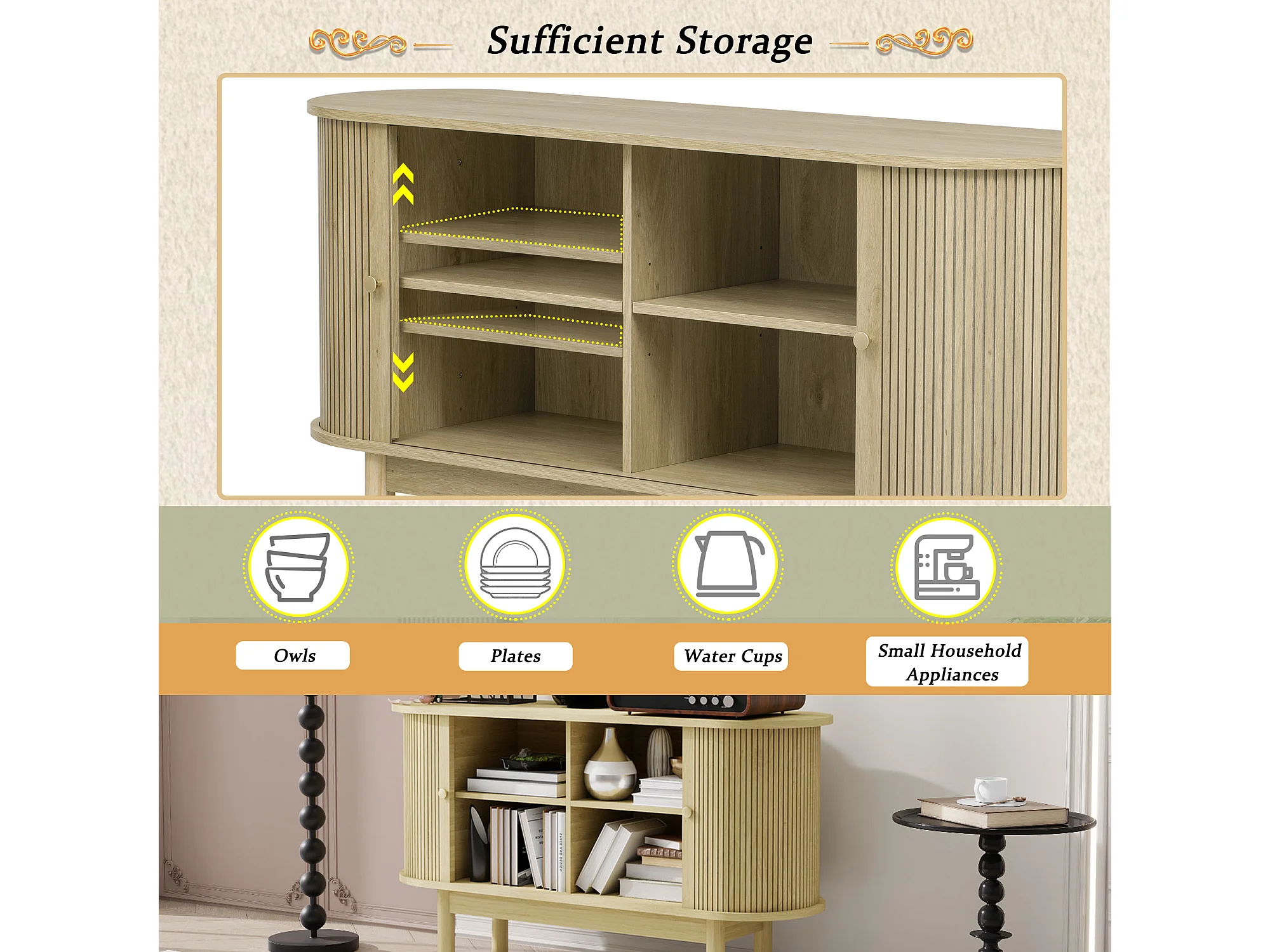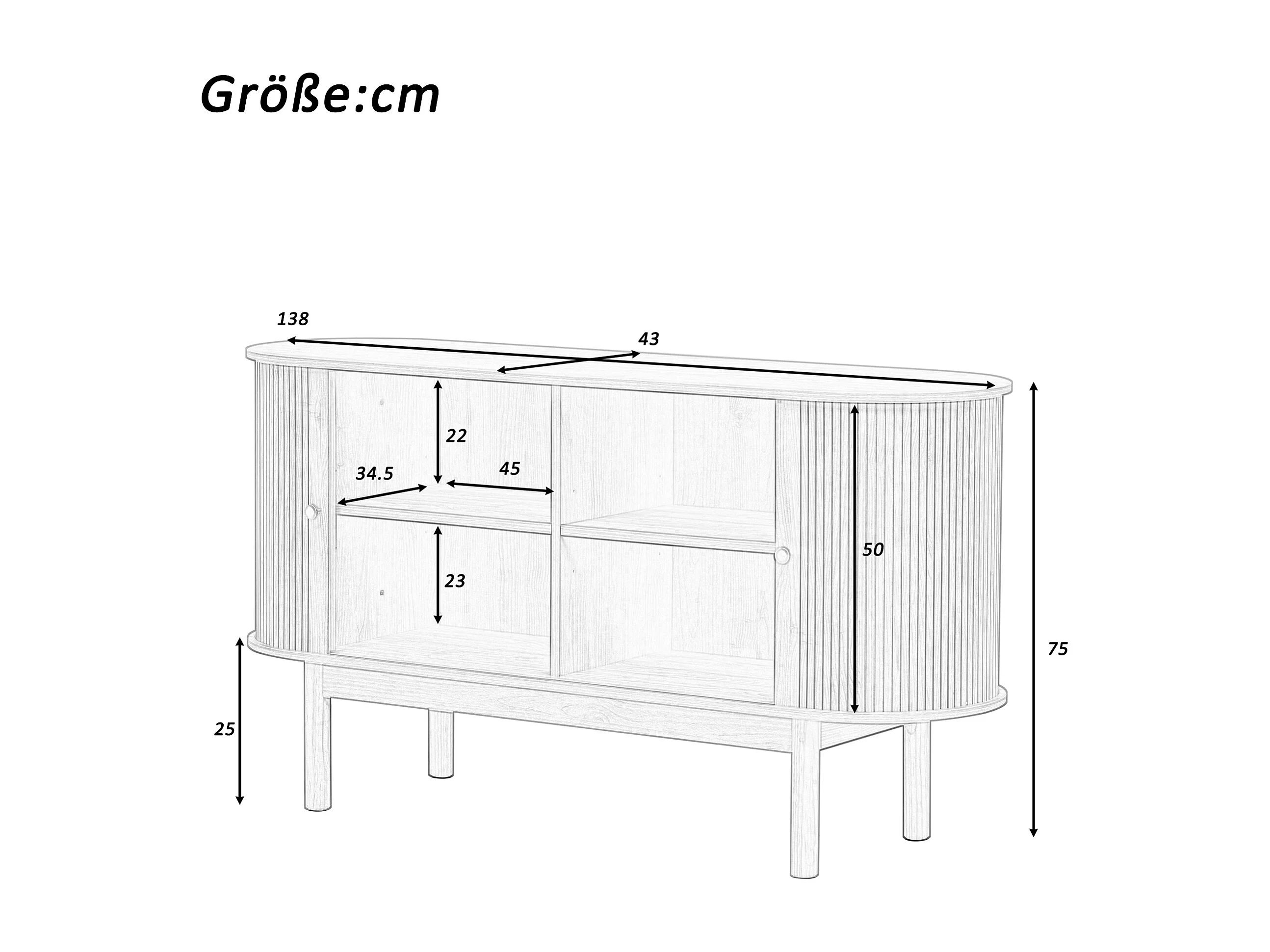 Buffet Bahut 138x43x75cm - 2 Portes coulissante - Pieds en pin - Buffet bahut salon/cuisine - Vintage - Etagère Réglable