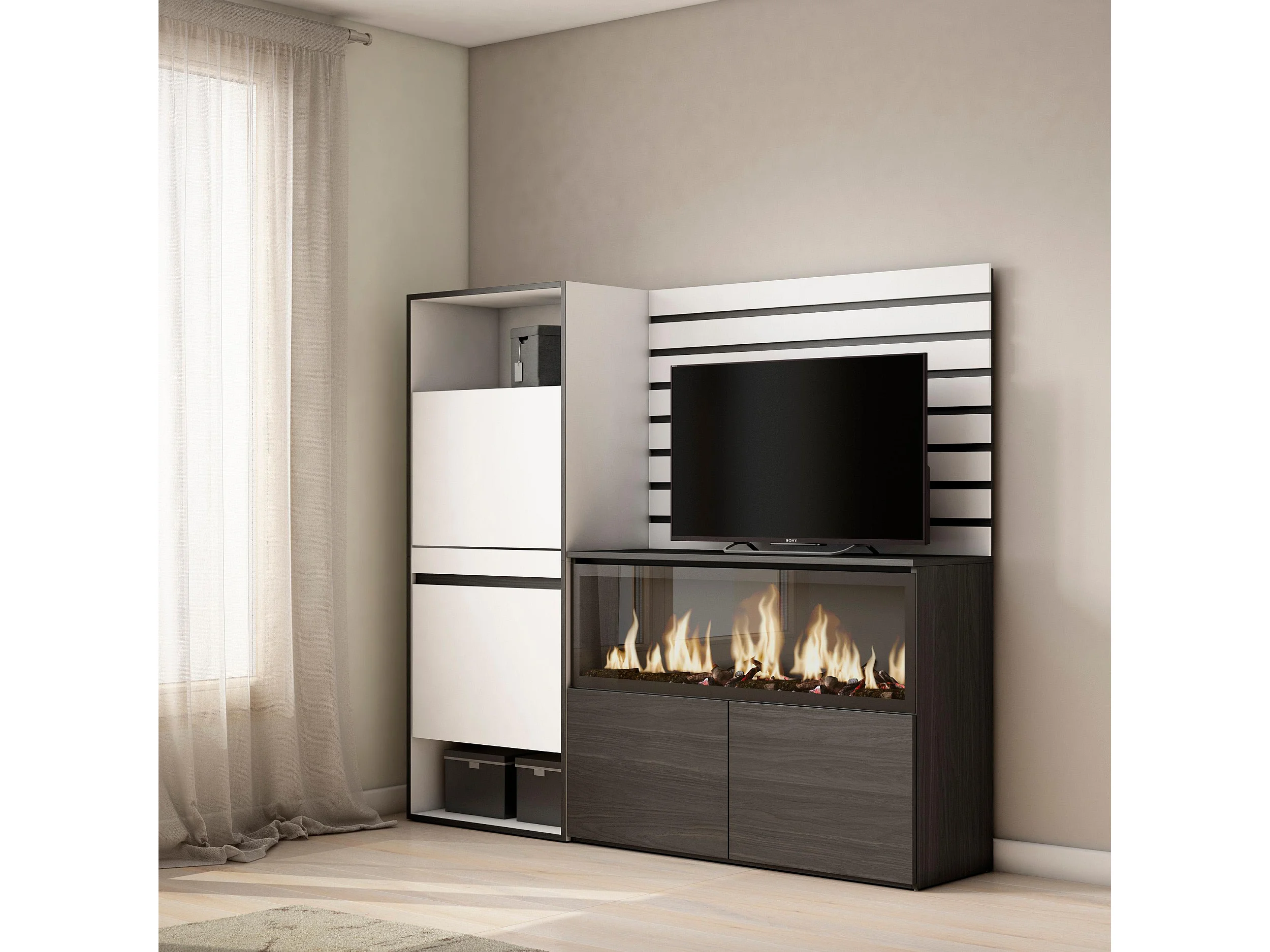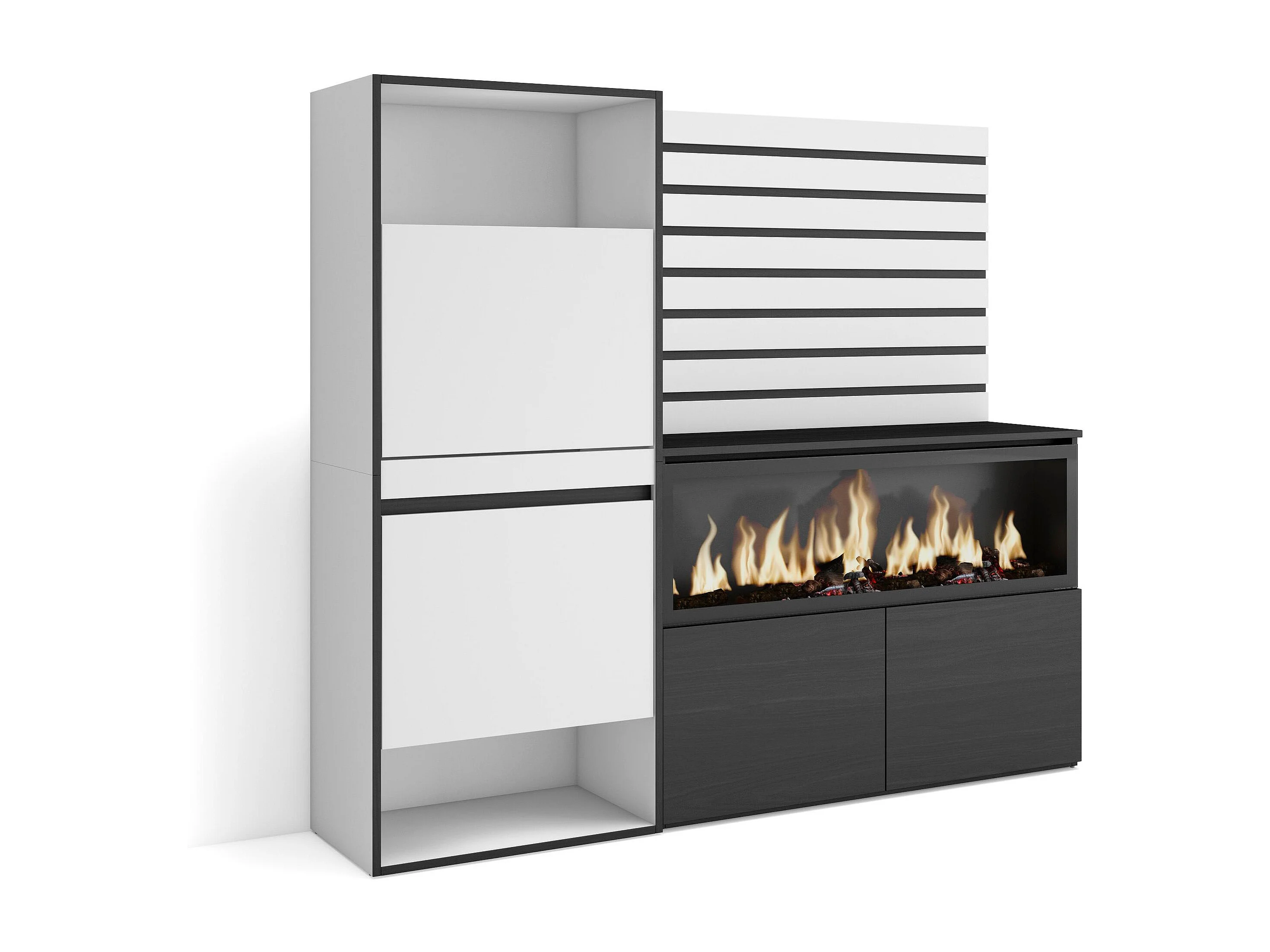 Buffet, Bahut, 167x35x145 cm, Chambre à coucher, pièce, Cheminée électrique XXL, Meuble à Chaussures, Blanc