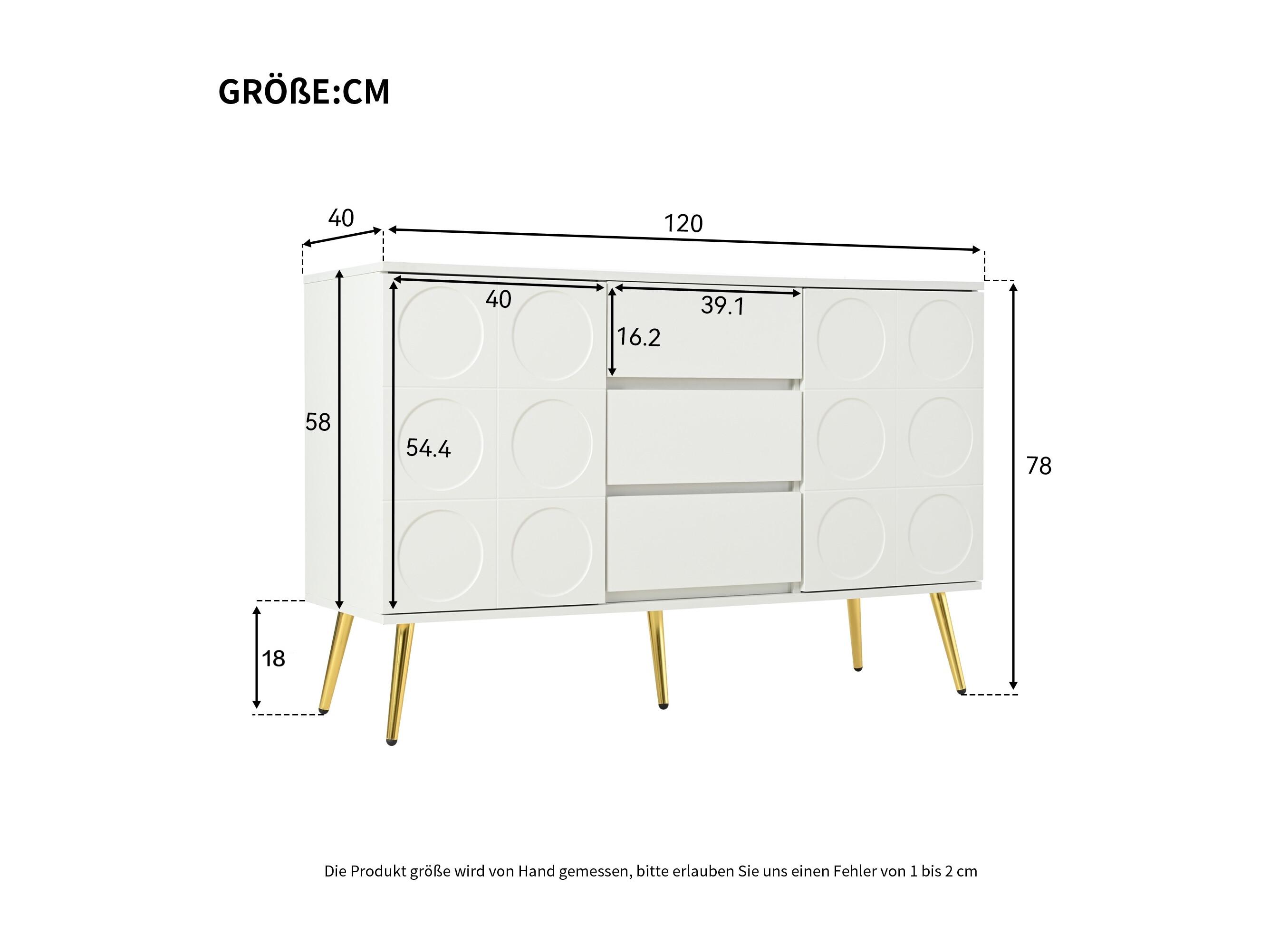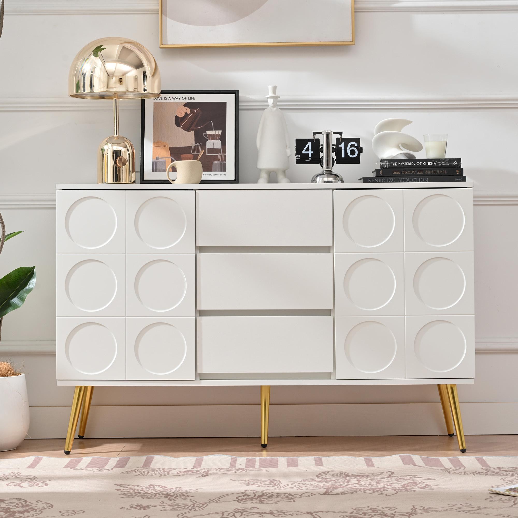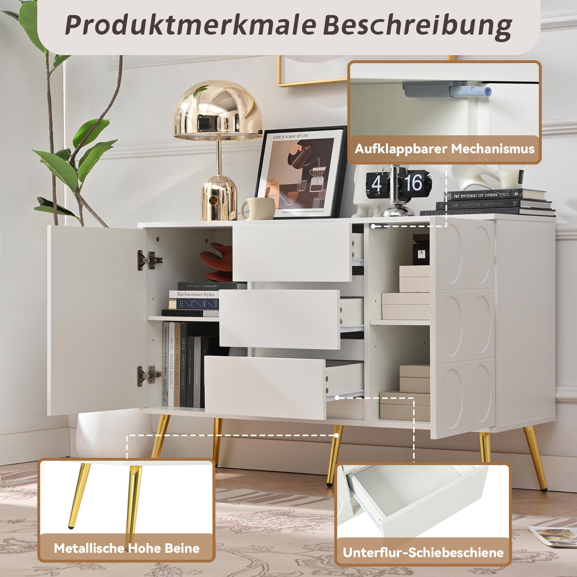Buffet bahut 3 tiroirs et 2 portes | 120x40x78 cm | Couleur Blanc Finition brillante | Meuble de Rangement | Buffet Moderne