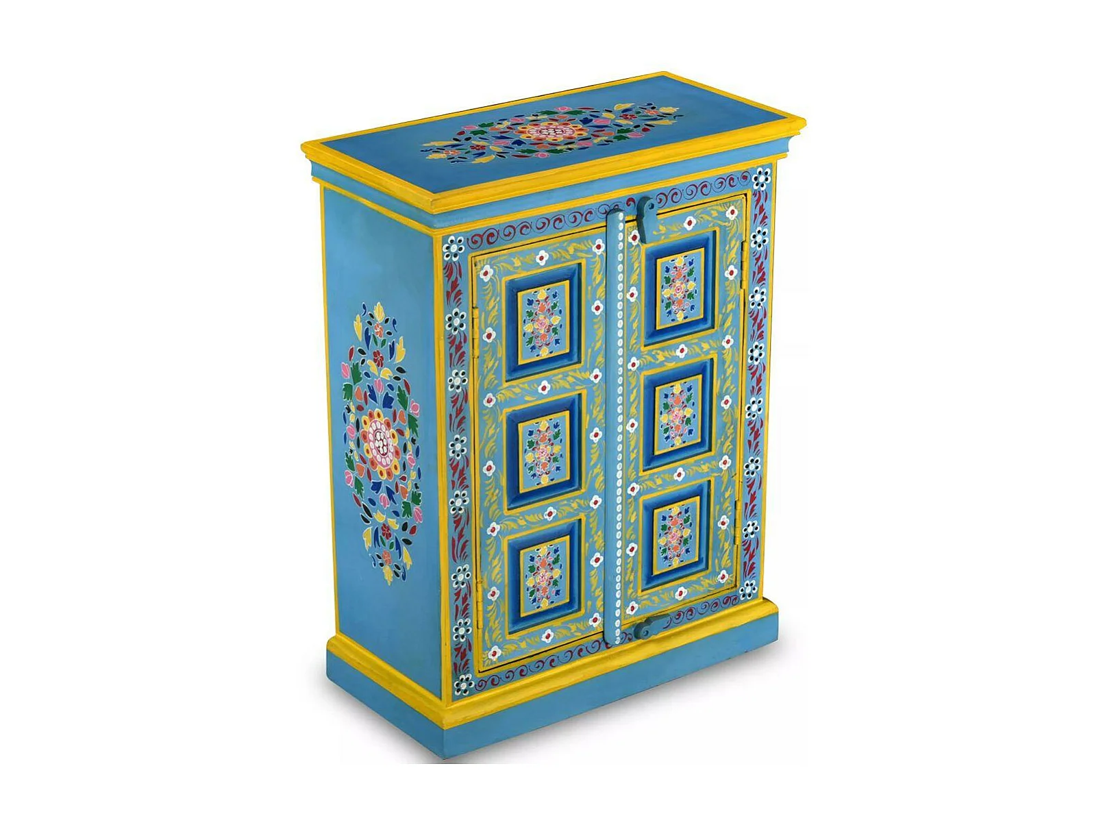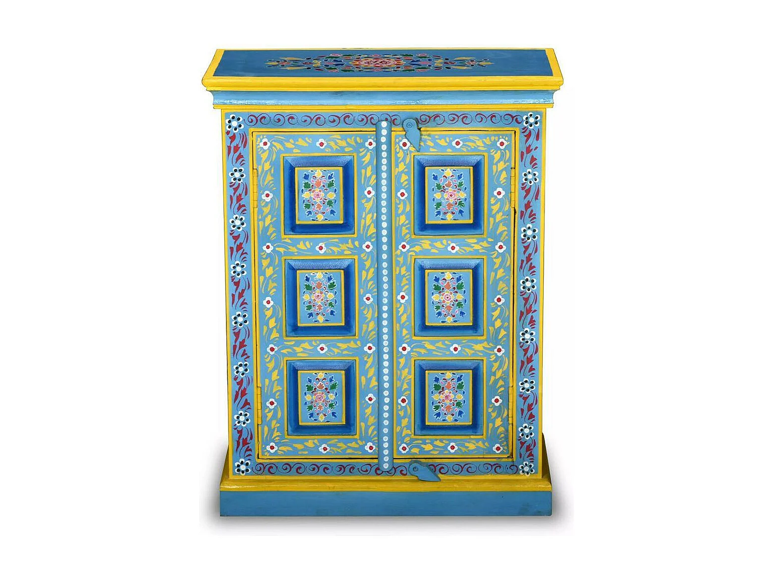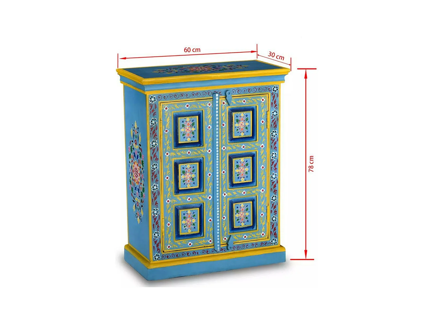 Buffet bahut armoire console meuble de rangement bois massif de manguier peinture manuelle turquoise 4402023