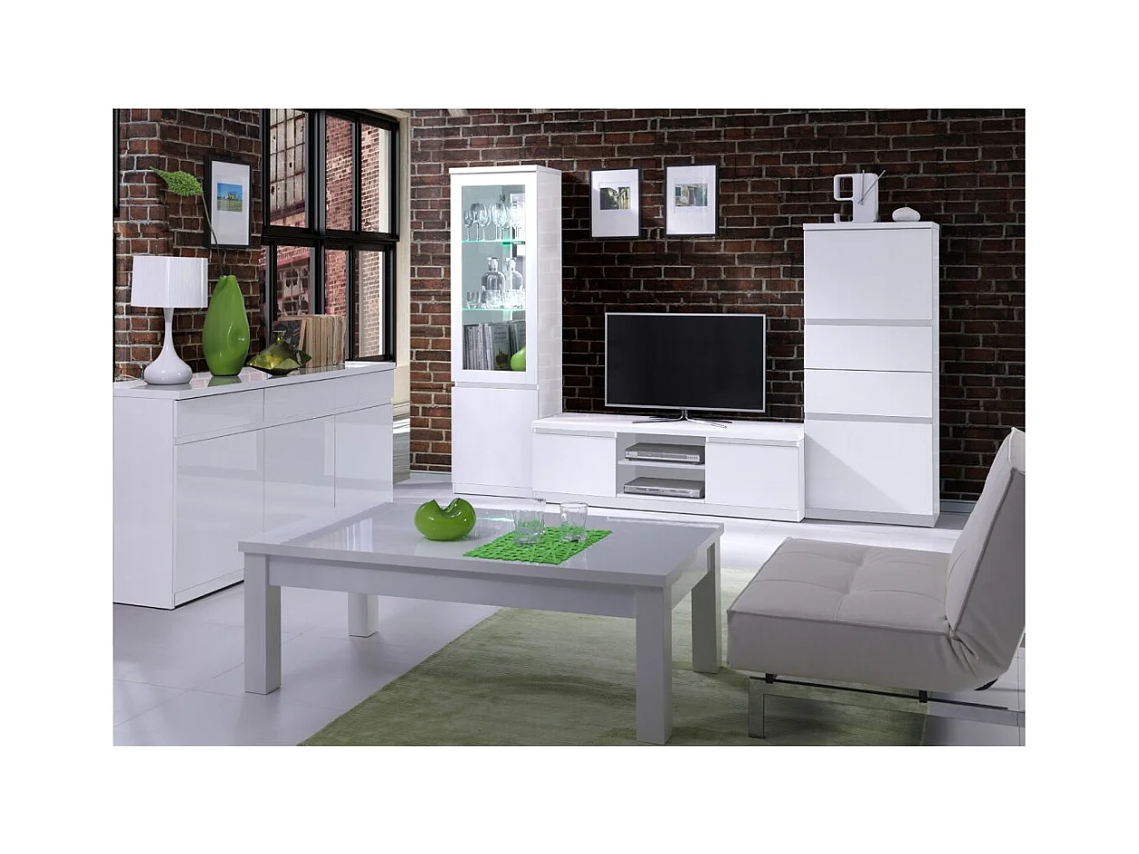 Ensemble buffet 3 portes 3 tiroirs FABIO + miroir – Blanc brillant – Design contemporain