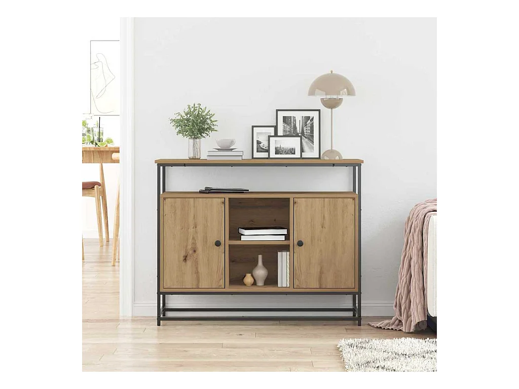 Buffet | Bahut | Meuble de rangement Artisan Chêne 100x35x80 cm Bois composite et Acier