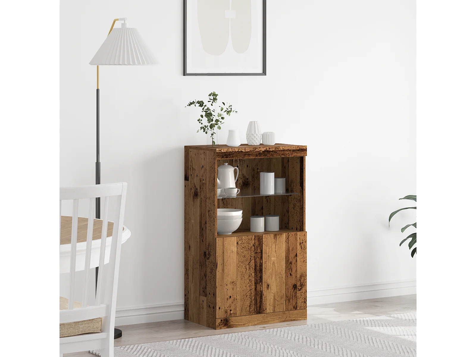 Buffet | Bahut | Meuble de rangement avec éclairage LED Bois vieilli 41x37x100 cm